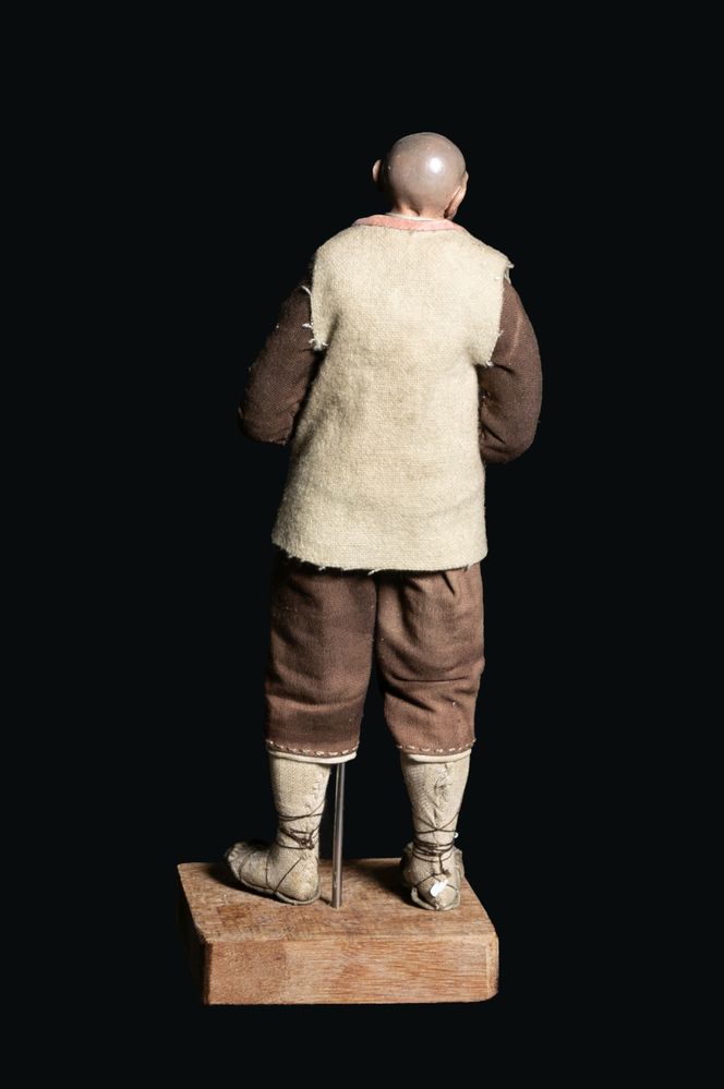 Figura da presepe in cartapesta e stoffa. Arte napoletana, XIX secolo. Cm 24x9,5x7. (difetti)