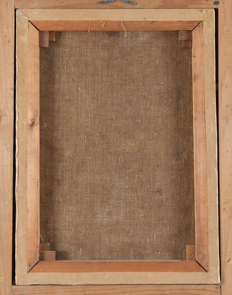 Maestro del XVII secolo. "Madonna con bambino e Santi". Olio su tela. Cm 55,5x40,5. Cornice laccata.