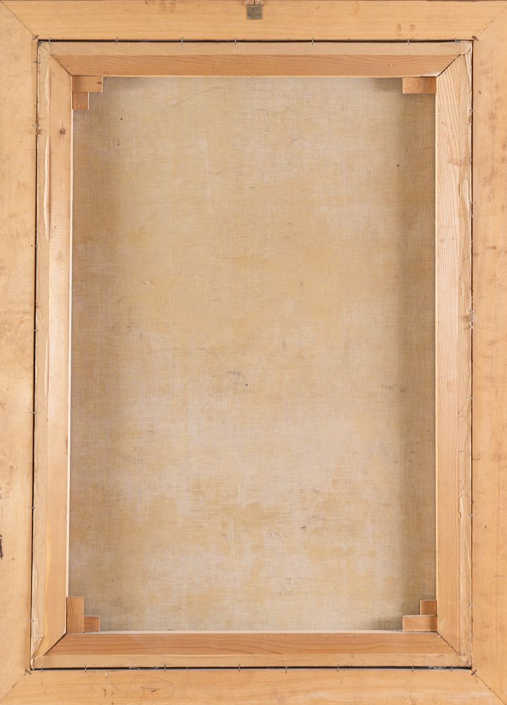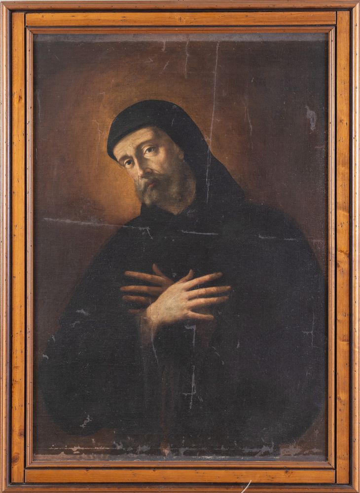 Maestro del XVII secolo. "Figura di Santo". Olio su tela. Cm 101x70.