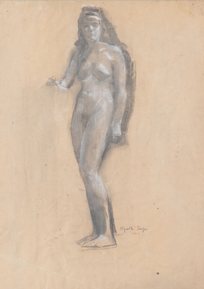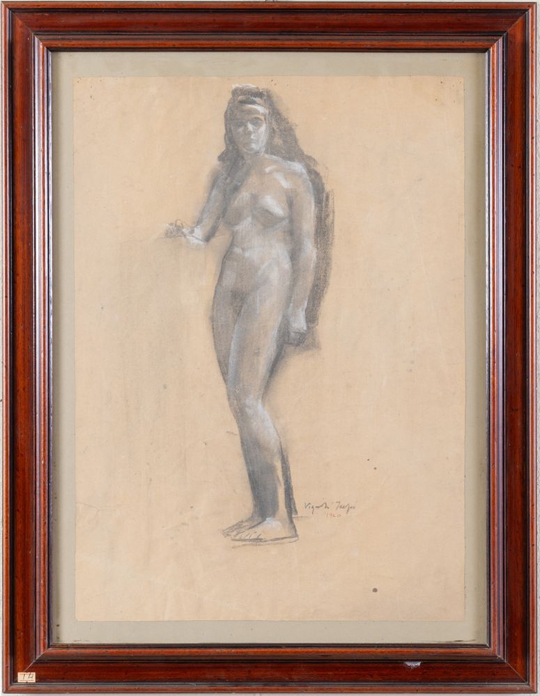 FARPI VIGNOLI (Bologna 1907 – 1997) "Nudo femminile", 1960. Carboncino su carta. Cm 66x48. Opera firmata e datata in basso a destra Vignoli Farpi 1960.