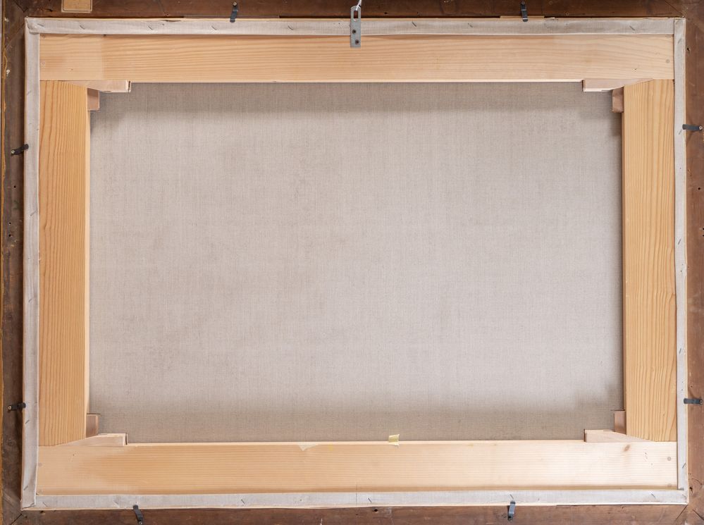Maestro del XVIII secolo. "Sacrificio di Noè dopo il diluvio". Olio su tela. Copia da Poussin. Cm 95x128,5. Opera accompagnata da indagine stratigrafiche e chimico-fisiche su frammenti di pellicola pittorica.