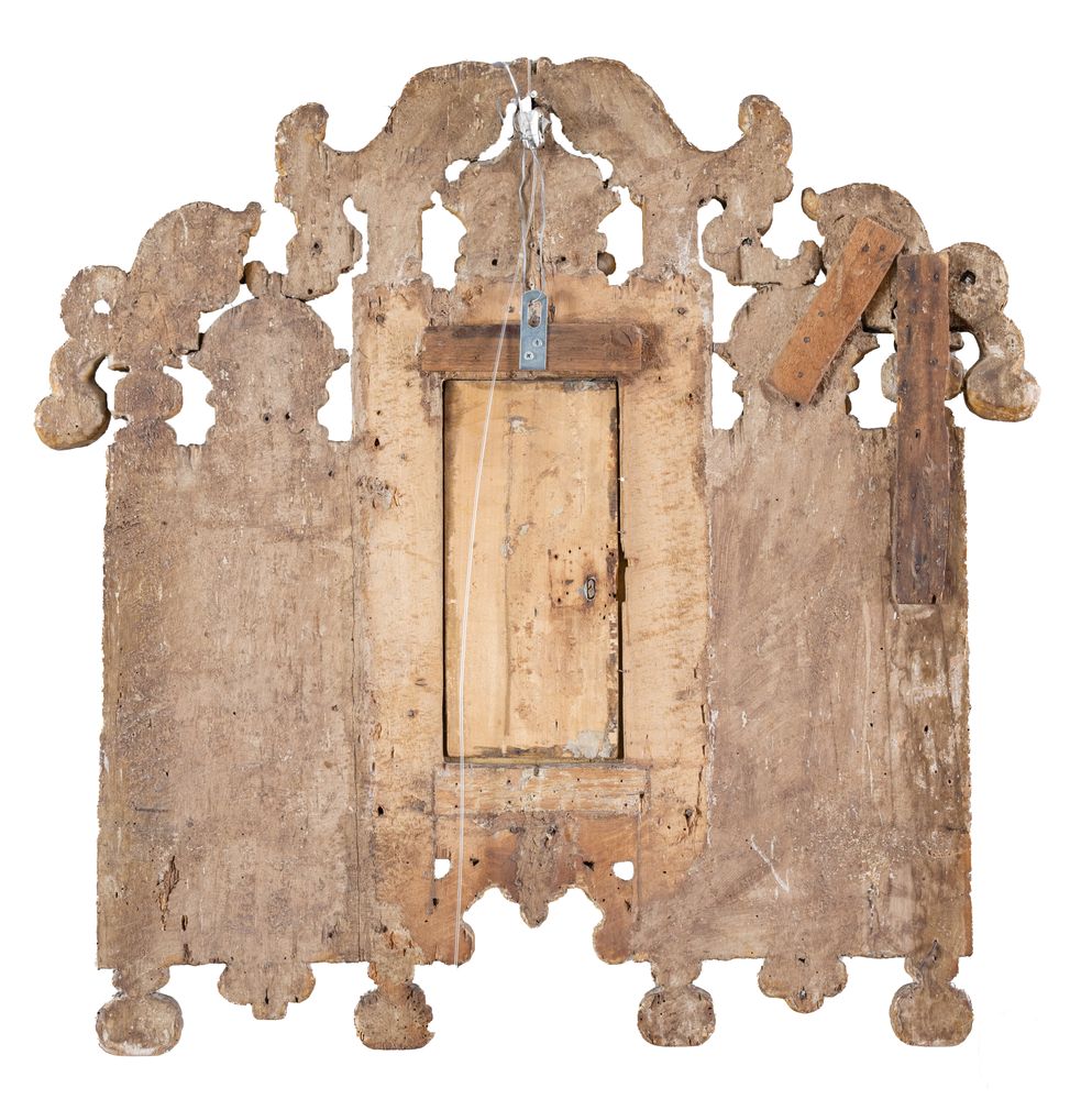 Scuola spagnola del XVII secolo. Altarolo in legno intagliato e dorato con...