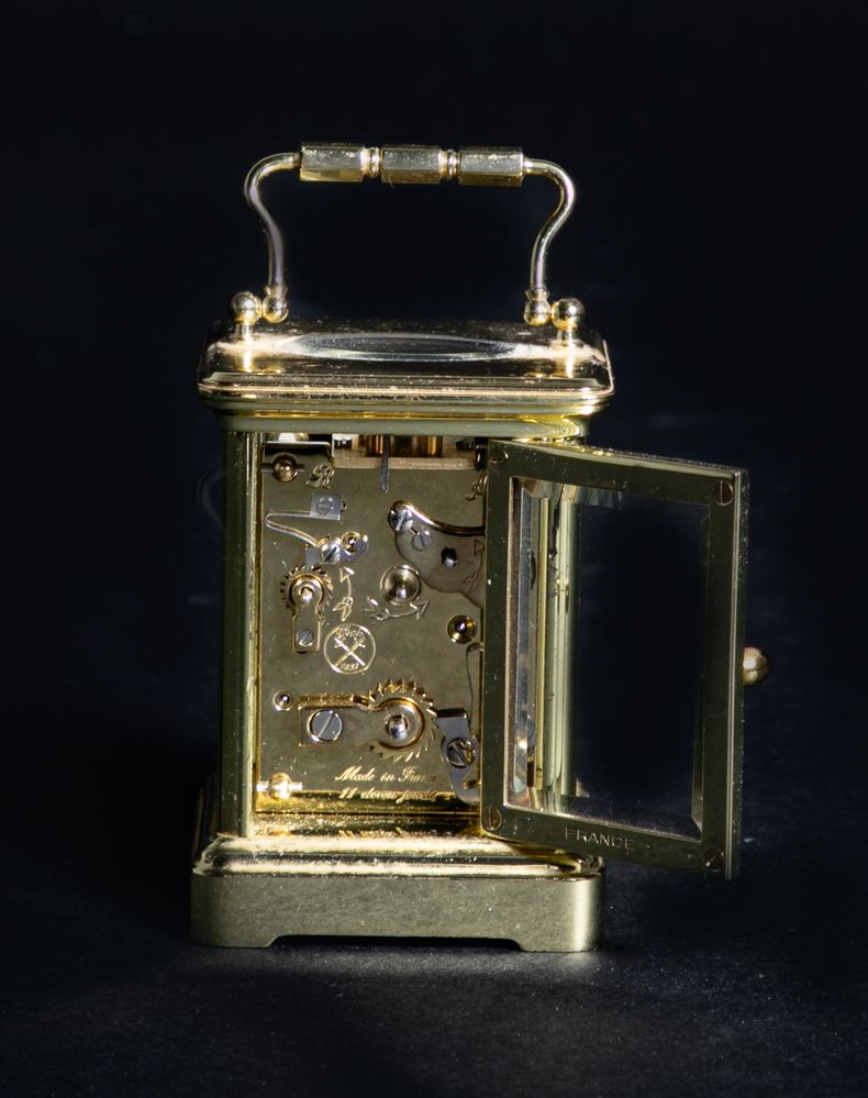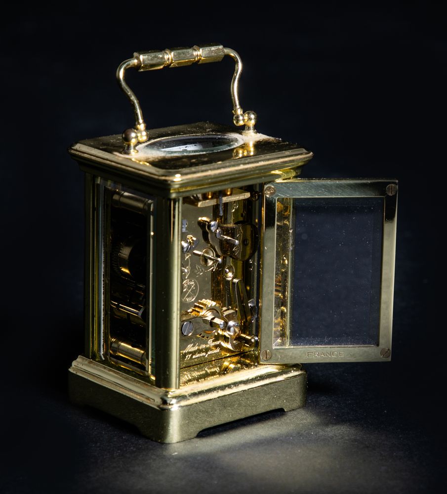 Orologio da viaggio. Con cassa in bronzo e vetro. Fine del XIX secolo - inizi...