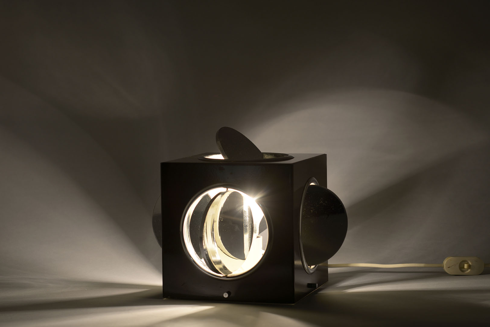 A cube-shaped bedside table lamp A bedside table lamp, Italy 1970'sA...