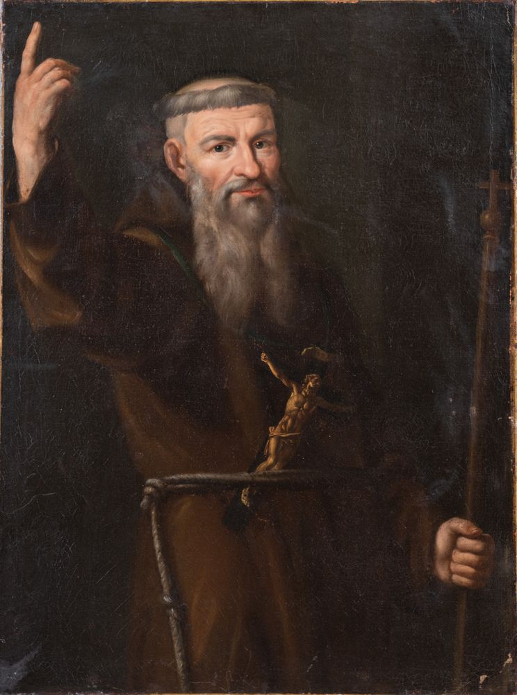 Maestro del XVII secolo. "San Damiano”. Olio su tela. Cm 98,5x73,5.