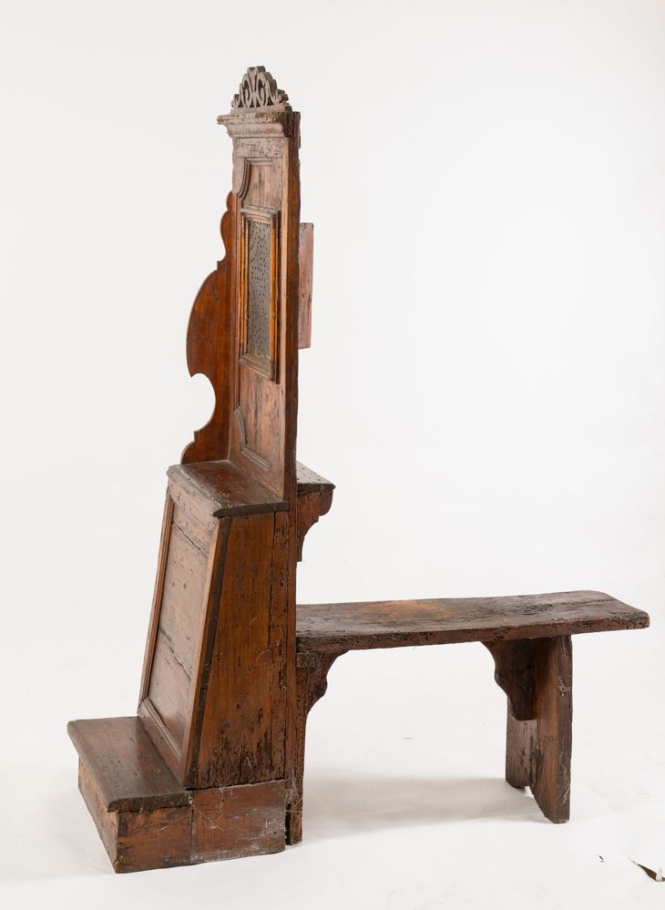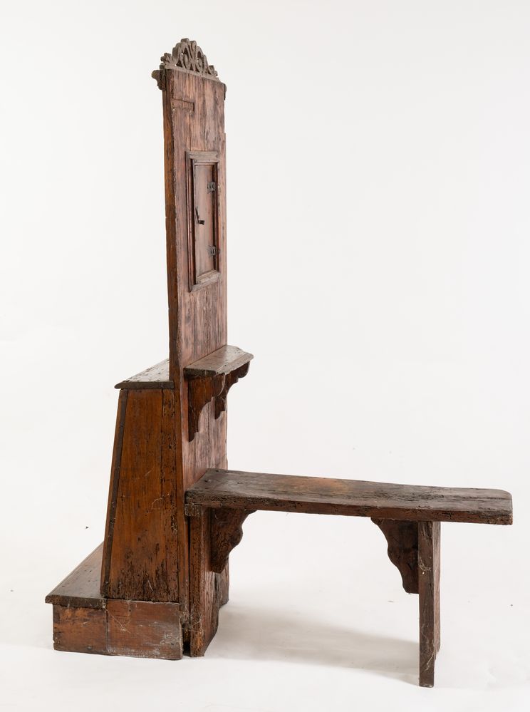 Inginocchiatoio confessionale in legno di pioppo. Emilia, fine del XVII...