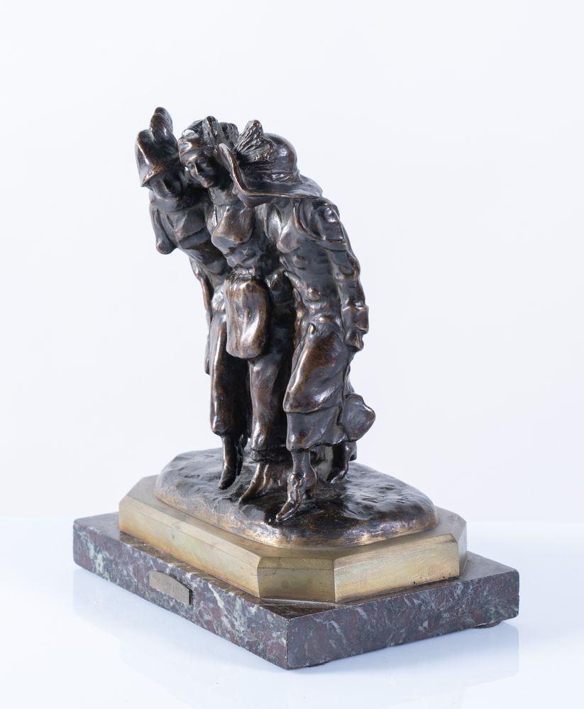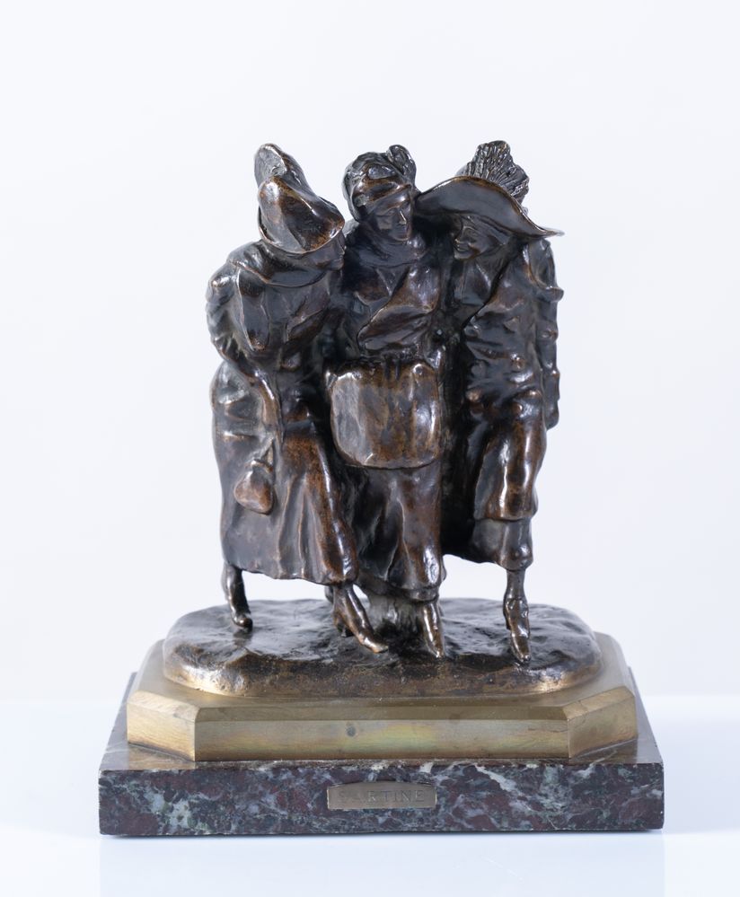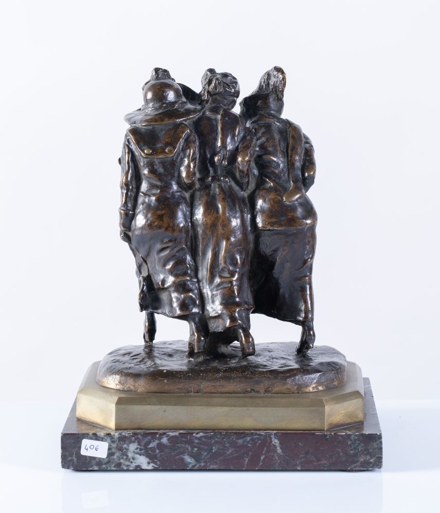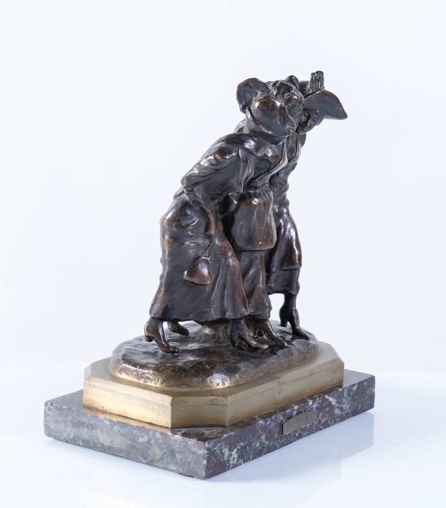 ROBERTO NEGRI (Attivo a Torino tra la fine dell'800 e i primi decenni del '900). "Sartine", scultura in bronzo su base in marmo. Cm 24x19.5x13. Opera firmata alla base Negri e datata 1900.