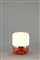 A red ABS lamp with white methacrylate diffuser. It presents two switches one for the intensity of the light (soft or bright light) and one to turn on the radio (radio bands are no longer used).