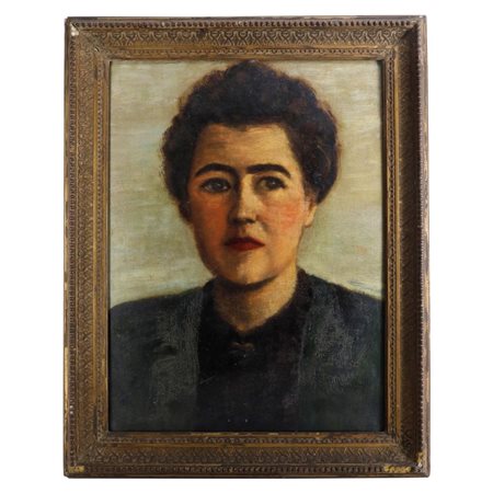Busto di donna metà XX secolo dipinto ad olio su cartone 49 x 38 cm