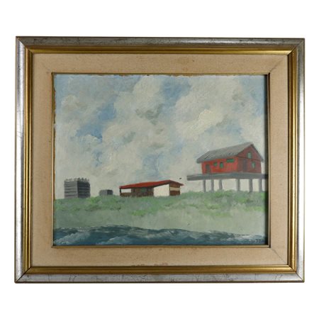 Passoscuro la casa rossa scuola italiana metà XX secolo dipinto ad olio su tavola 38 x 48 cm