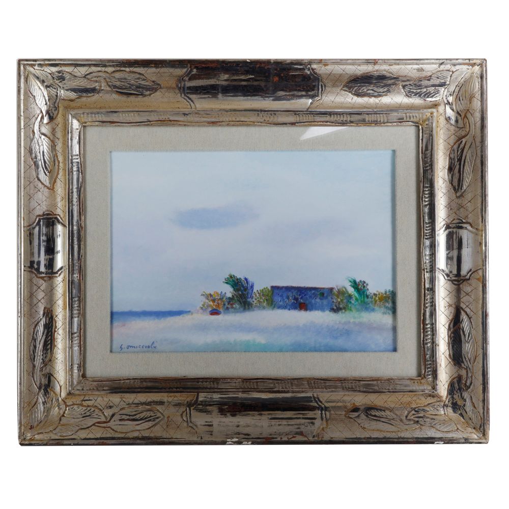 GIOVANNI OMICCIOLI (Roma, 1901 - 1975) Capanno blue a Fregene dipinto a olio su tela 36 x 52 cm