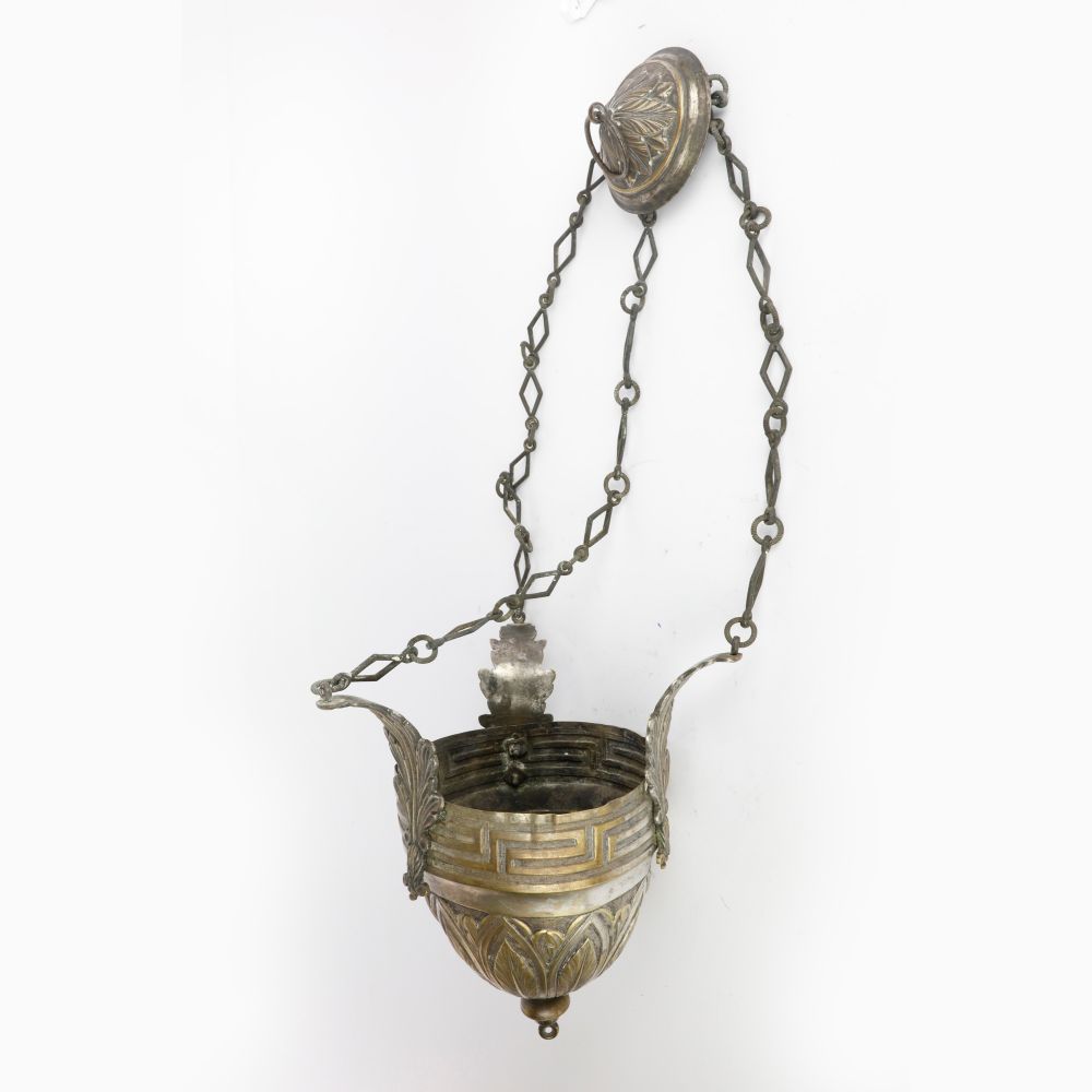 Lampada in sospensione in metallo argentato XIX secolo 70 x 16 cm