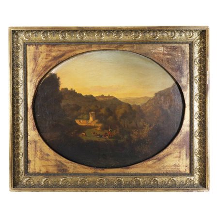 Paesaggio con torre ed armenti seconda metà XIX secolo