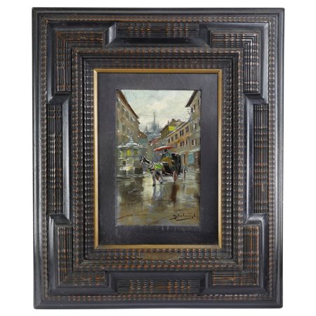 dipinto ad olio su tavola 29,5 x 21 e 30 x 22 cm in cornice coeva ebanizzata, firmato in basso al recto