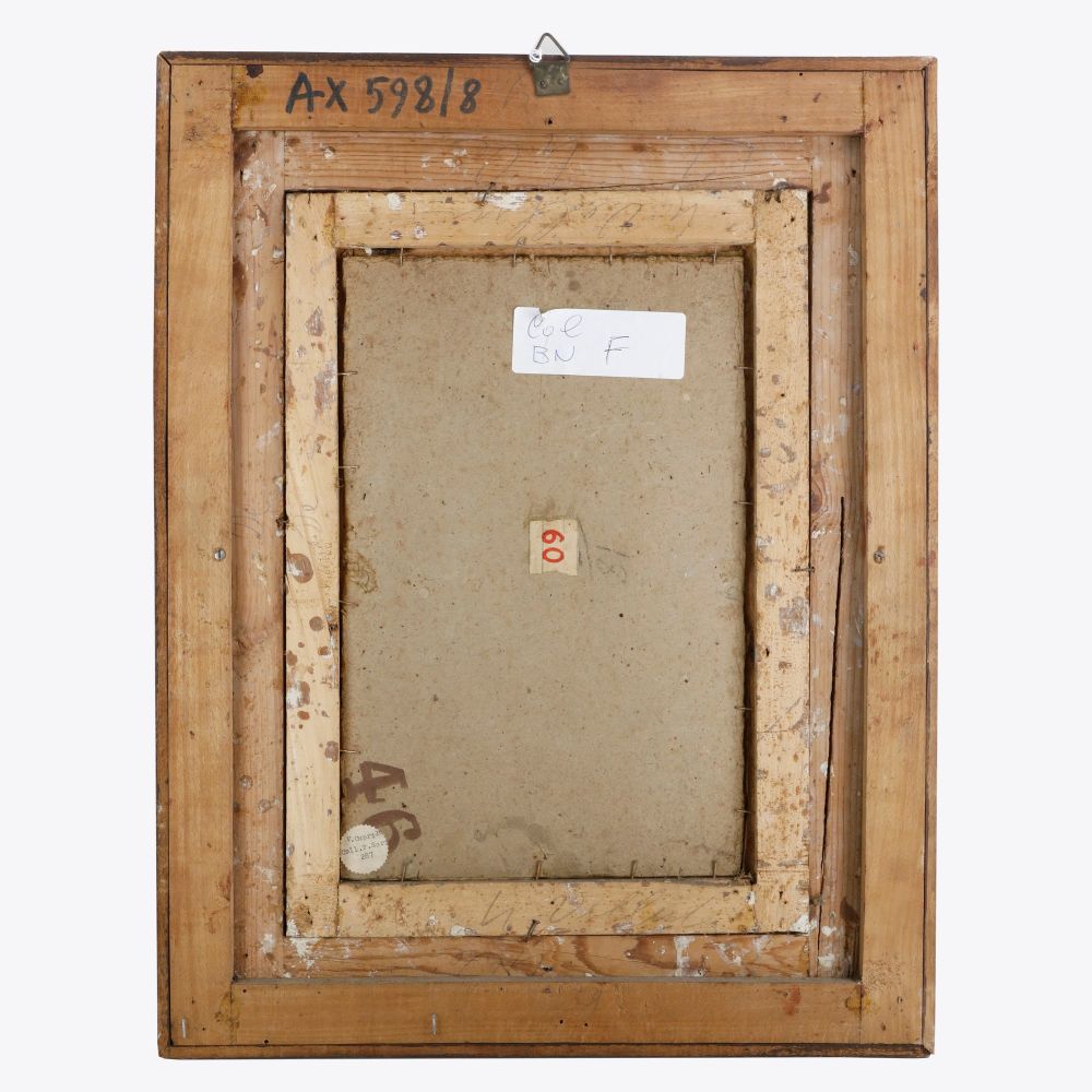 dipinto ad olio su cartone 36 x 23 cm firmato al fronte in basso a destra in cornice dorata con al retro dicitura di appartenenza a collezione