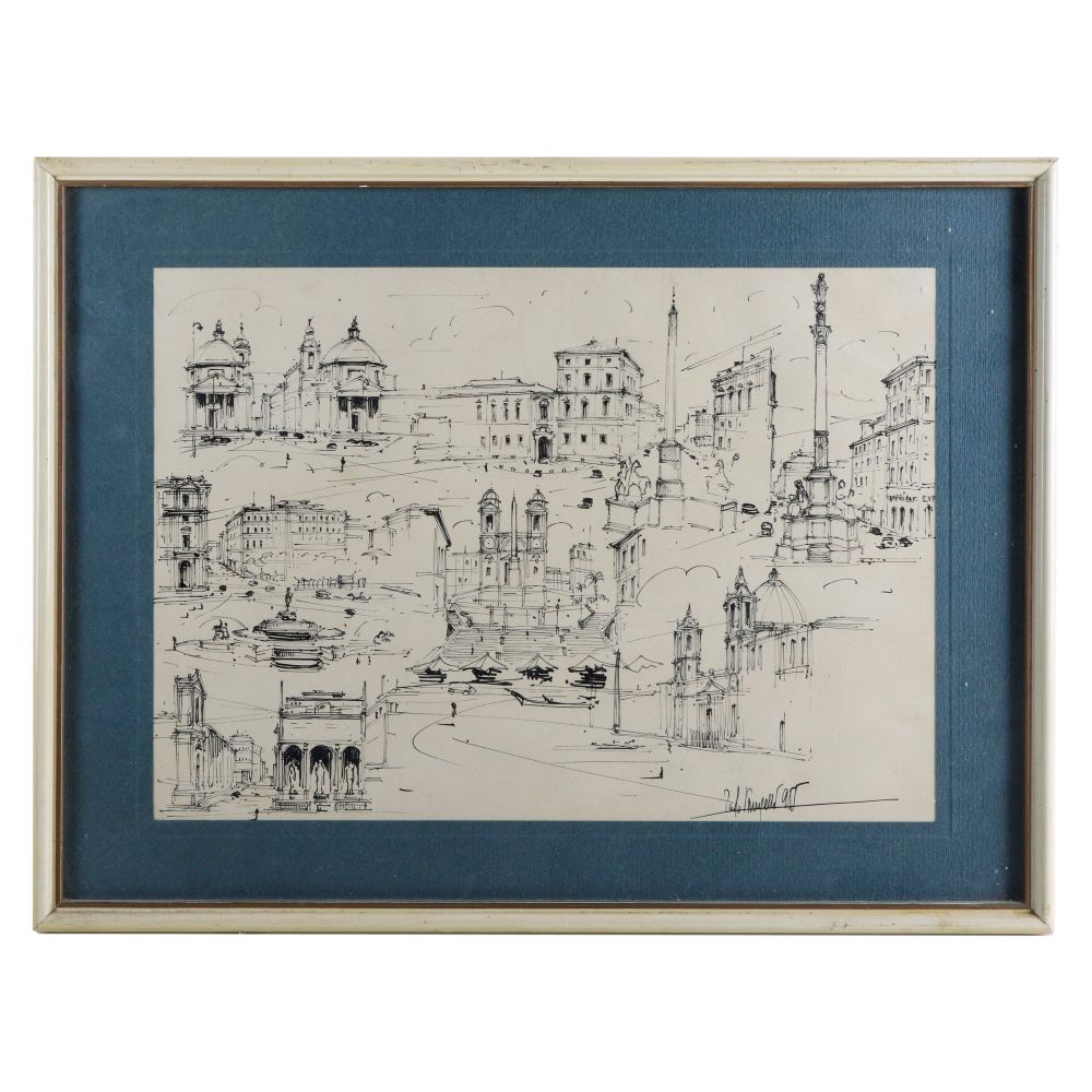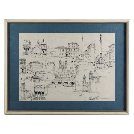 Lotto di 3 disegni a matita inchiostro di china ed acquarello XX secolo