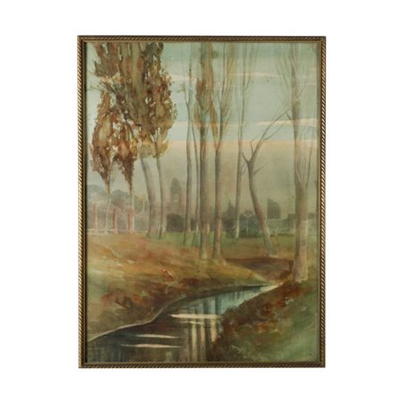 Scorcio di paesaggio con fiume ed alberi Prima metà XX secolo acquarello su carta 56 x 41 cm