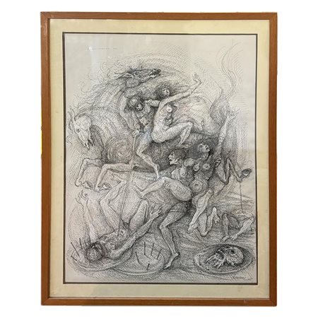 ANGELO CANEVARI (Roma, 1930 - ) Figure nude che lottano disegno ad inchiostro di china su carta 70 x 50