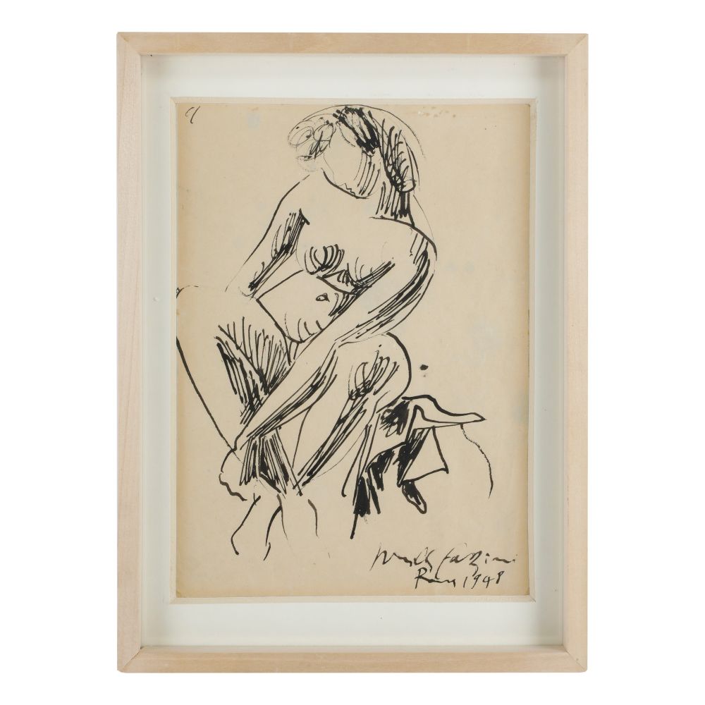 PERICLE FAZZINI (Grottammare, 1913 - Roma, 1987) Figura di donna 1948 China su carta 29 x 20 cm