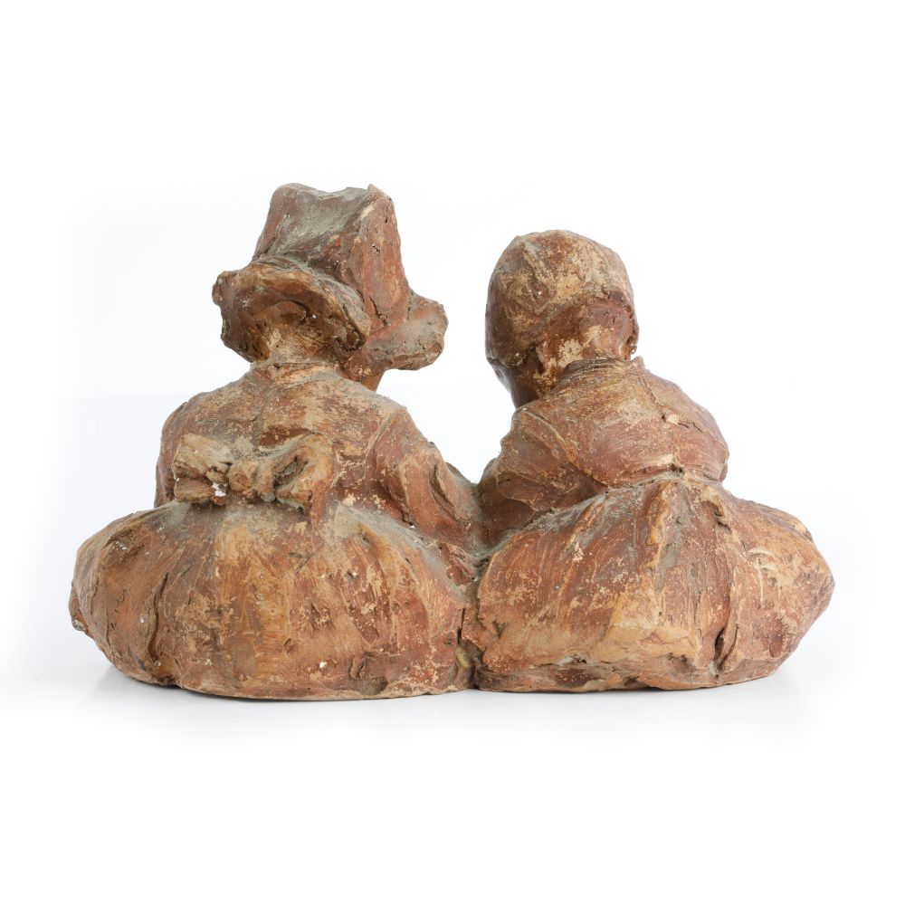Coppia di bambini in terracotta, scultura in volume Francia fine XIX