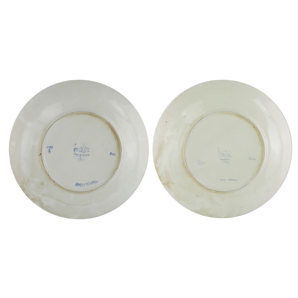Coppia di piatti in ceramica bianca con decoro floreale anni '60