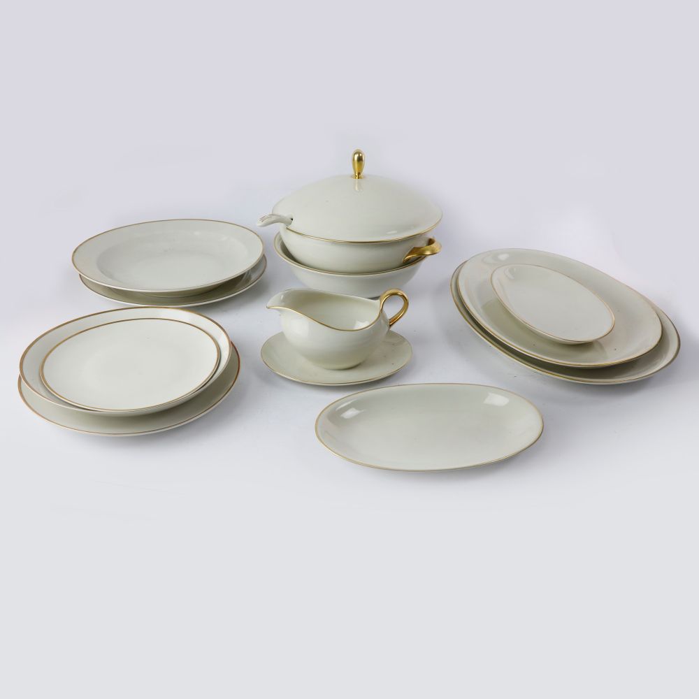 12 scodelle da zuppa , 36 piatti da coltello, 12 piatti da dessert, 6 piatti da portata a misure e forme diverse 1 zuppiera , 1 salsiera e 1 insalatiera ,manifattura di Verbano Laveno pz. 69