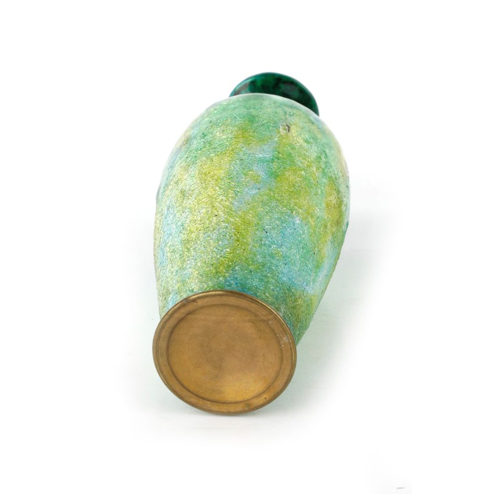 Vaso a smalto verde e blue in ottone Francia anni'20/30