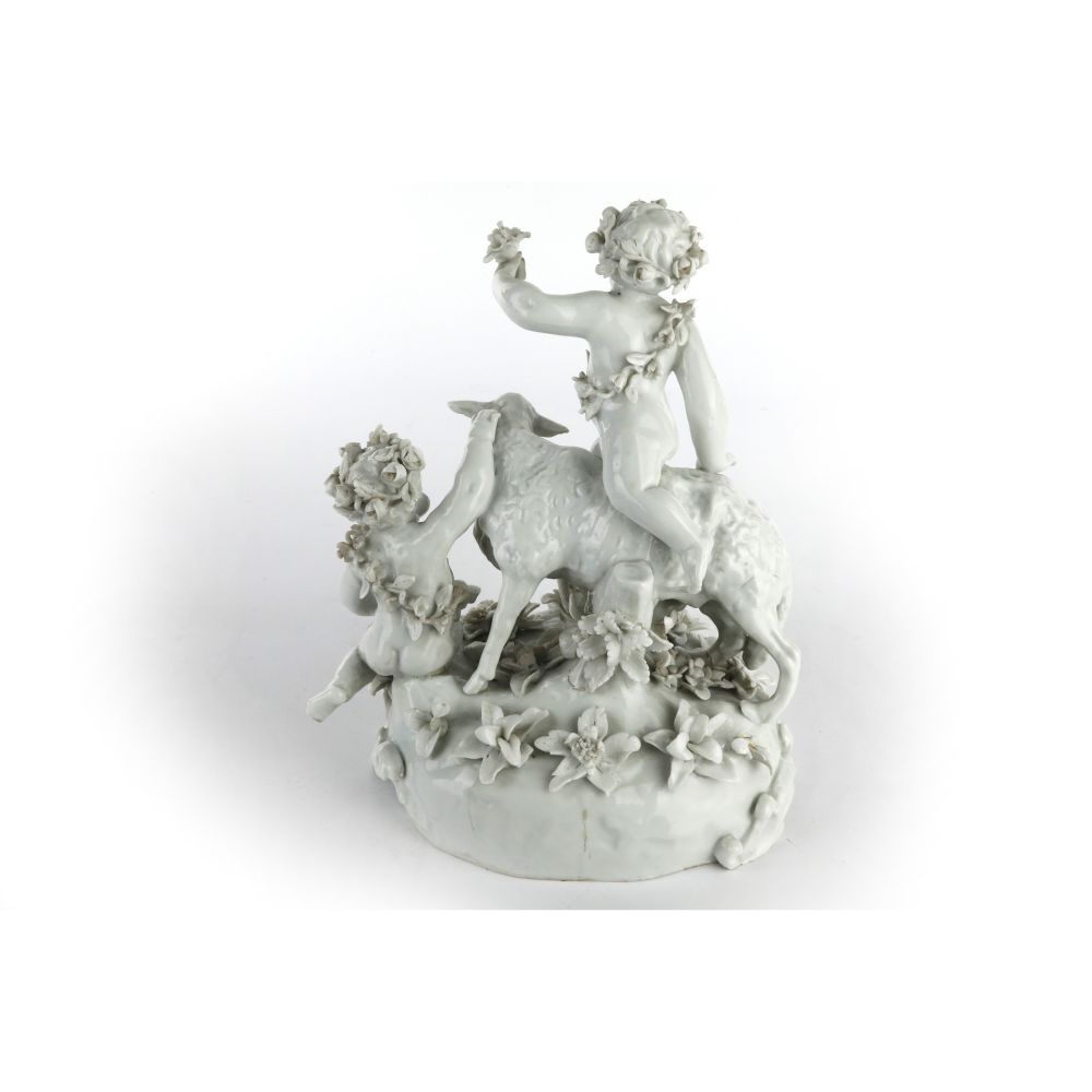 20 x 16 x 14 cm "putti con pecore" , marca "n" coronata in blu sottosmalto, manifattura francese.