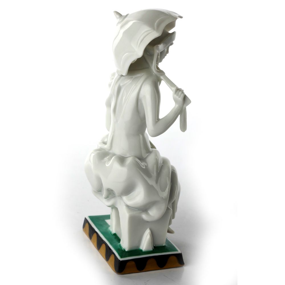 Dama con parasole, scultura in volume in porcellana bianca fine anni '20