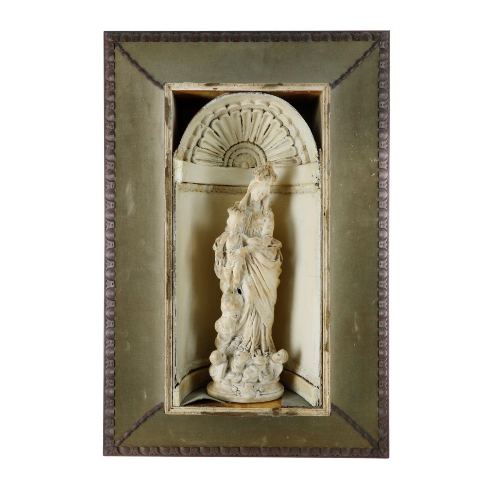Vergine con Bambino, scultura in volume in terra cruda Italia fine XVIII inizi XIX secolo 33 x 9 x 11 cm