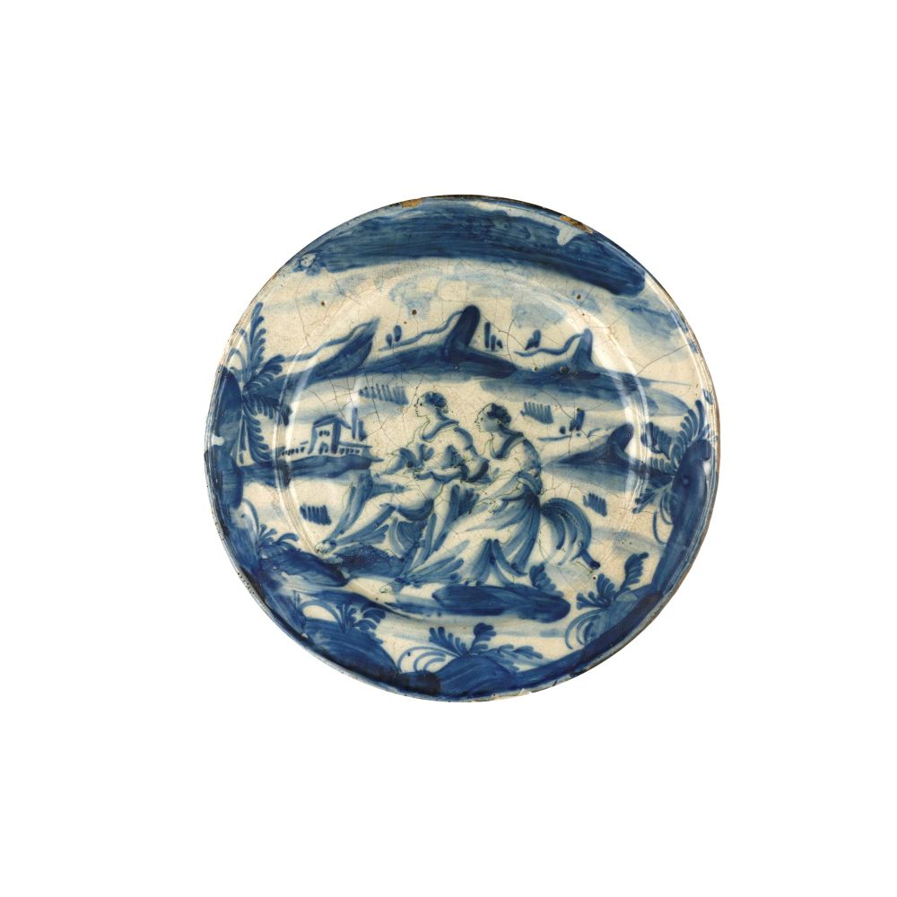 Piatto in ceramica bianca e bleu metà XVIII secolo