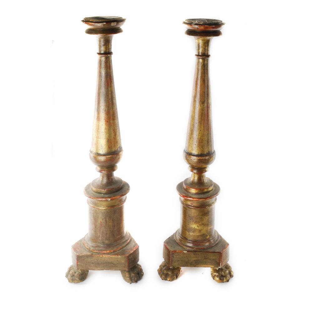 Coppia di torcieri in legno dorato prima metà XIX secolo