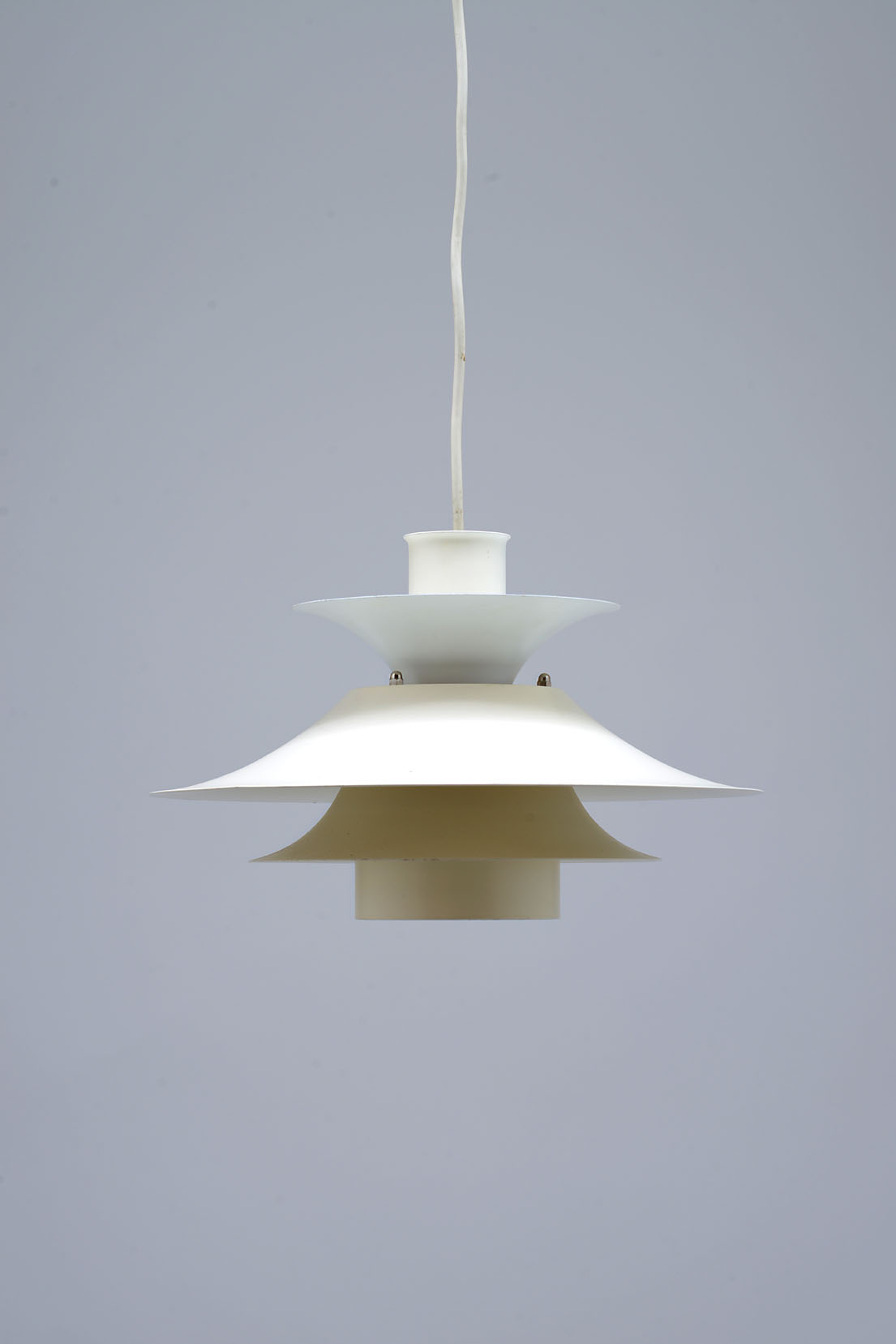 A white lacquered aluminium ceiling lamp.