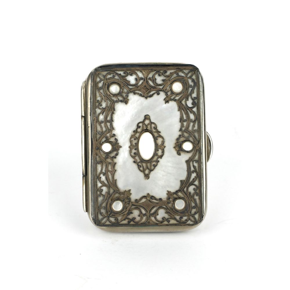 Portamonete in argento, stoffa, madreperla inizi XX secolo 7 x 5 x 2,5 cm
