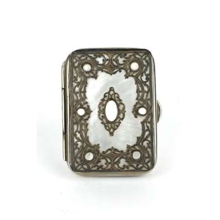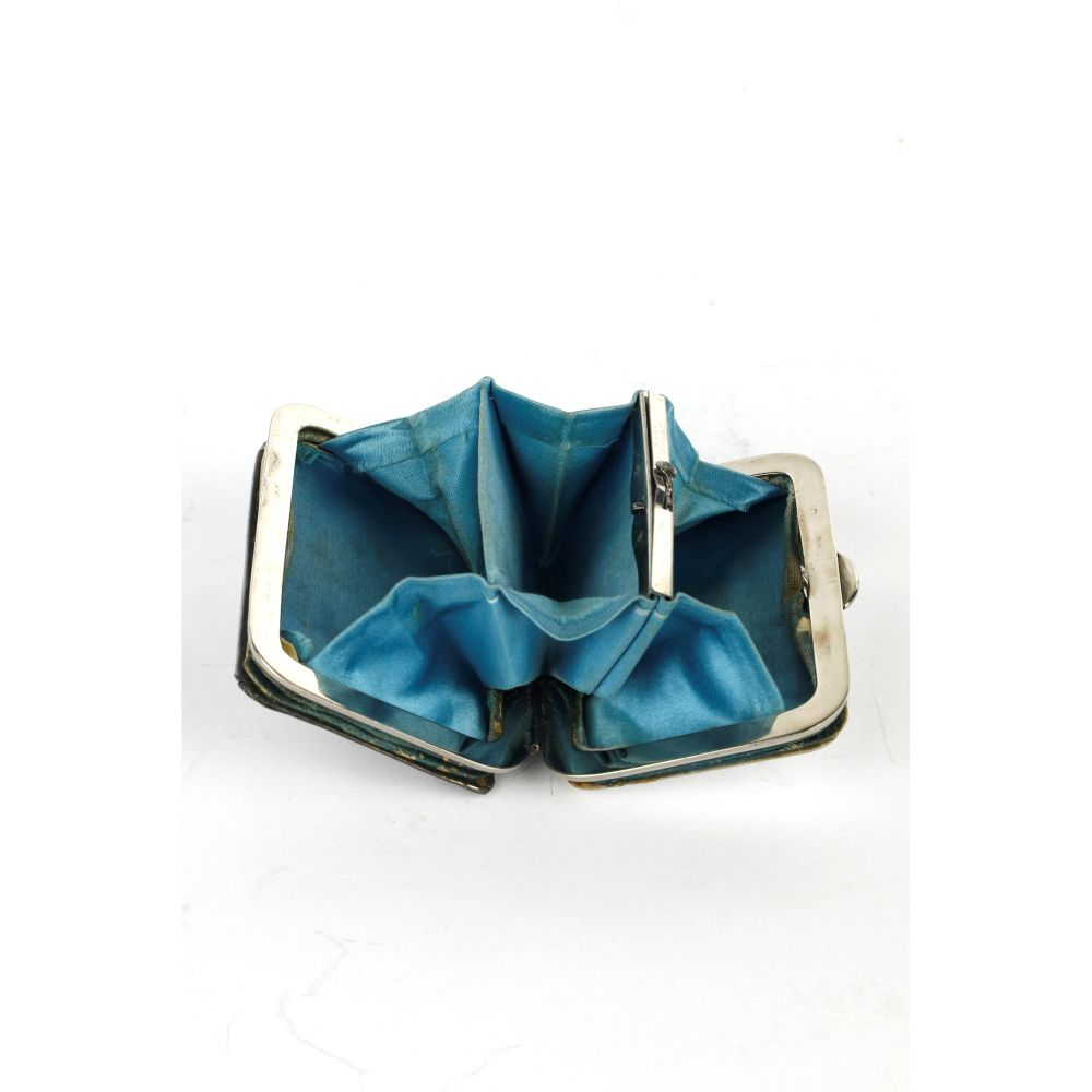 Portamonete in argento, stoffa, madreperla inizi XX secolo