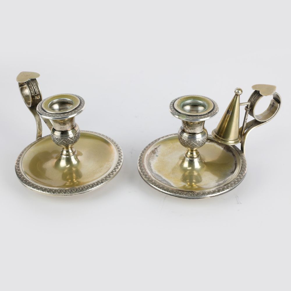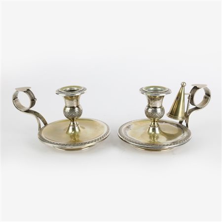 Coppia di bugie in argento 800/1000 seconda metà XX secolo 9 x 7 cm