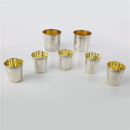 Lotto di 7 bicchieri in argento parte 925 parte 900 seconda metà XX secolo