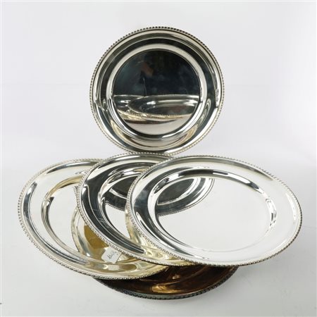 lotto di 5 sottopiatti in argento 800/1000 seconda metà XX secolo