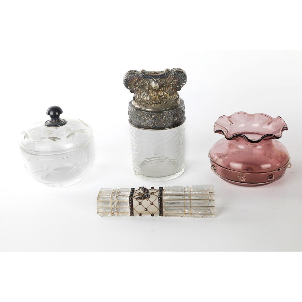 in vetro lavorato parti in metallo e pietre dure, (alcuni vetri di Murano).