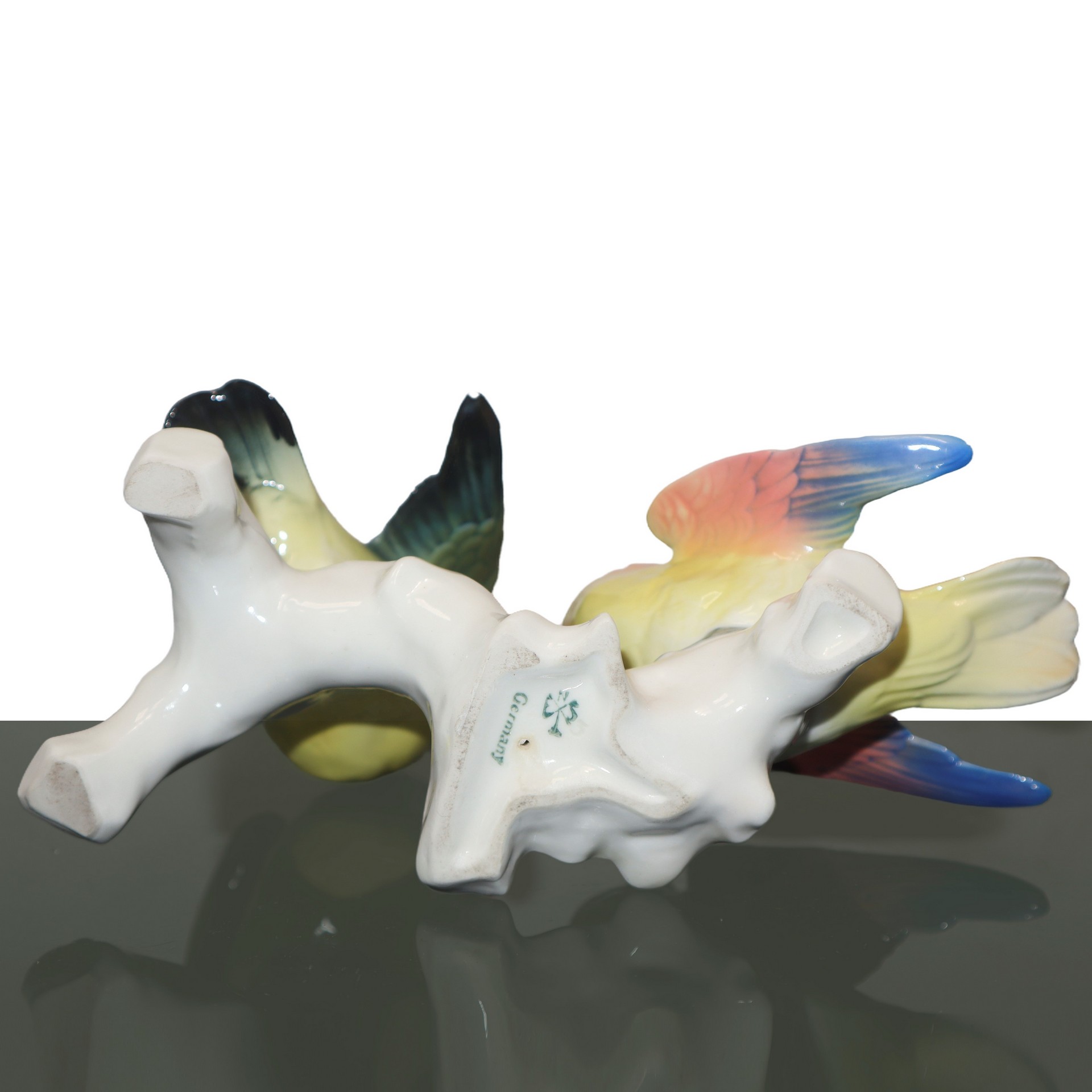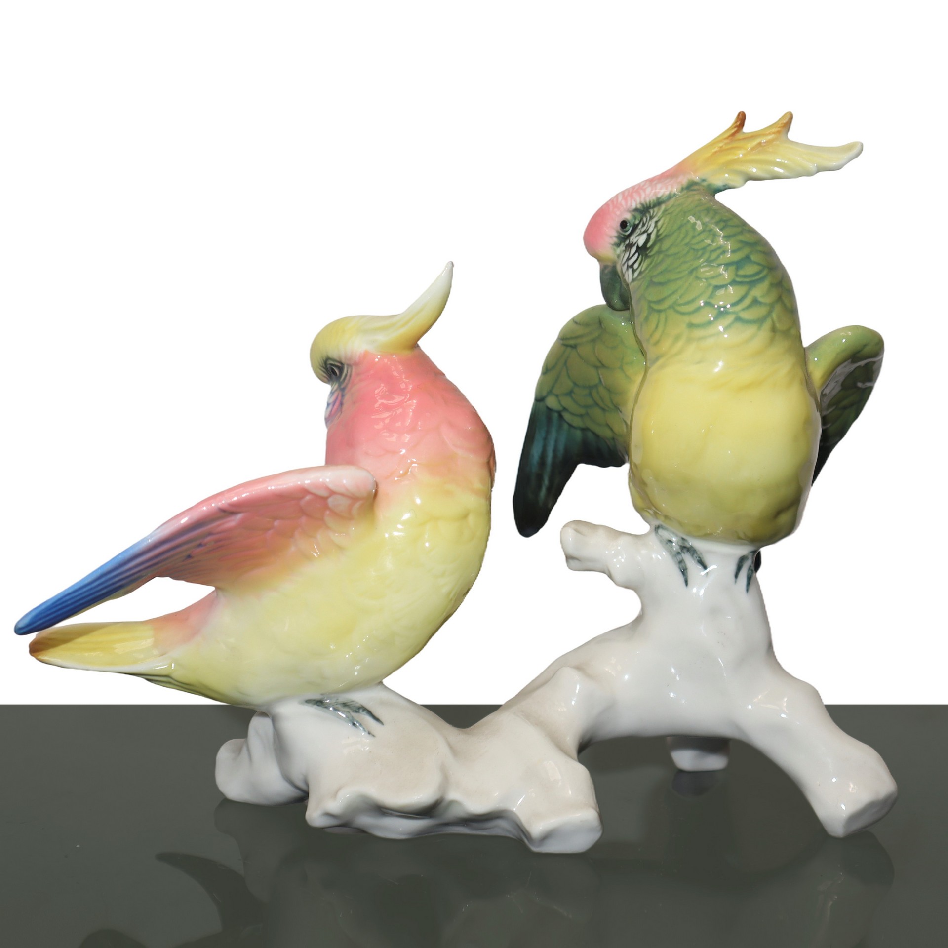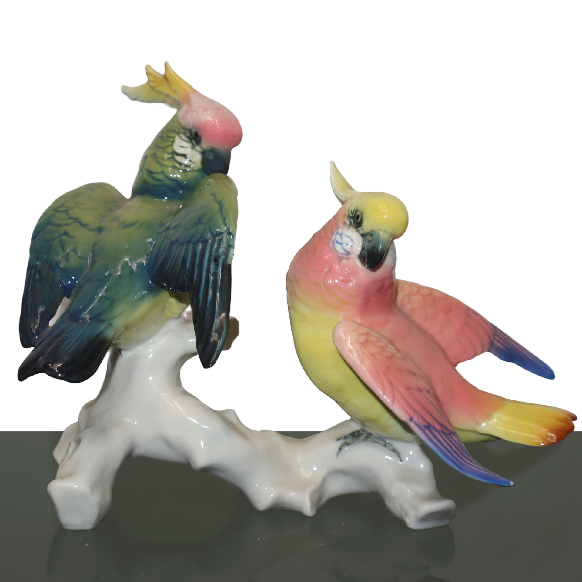 Porzellanfabrik Karl Ens (1889) - Coppia di pappagalli Cacatua su Monte Bianco in porcellana policroma