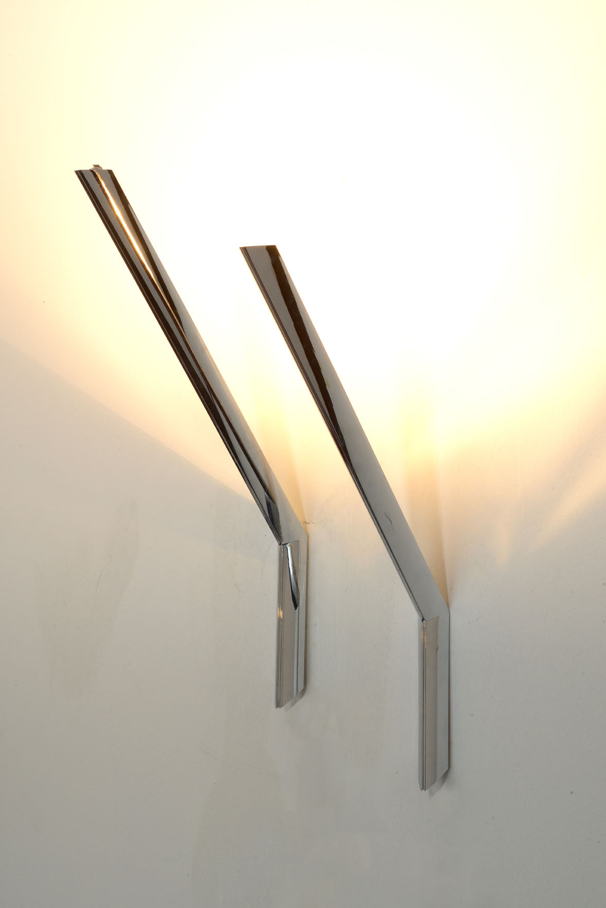 Slender chromed metal arrow-like appliques with V R7S linear halogen lamps.