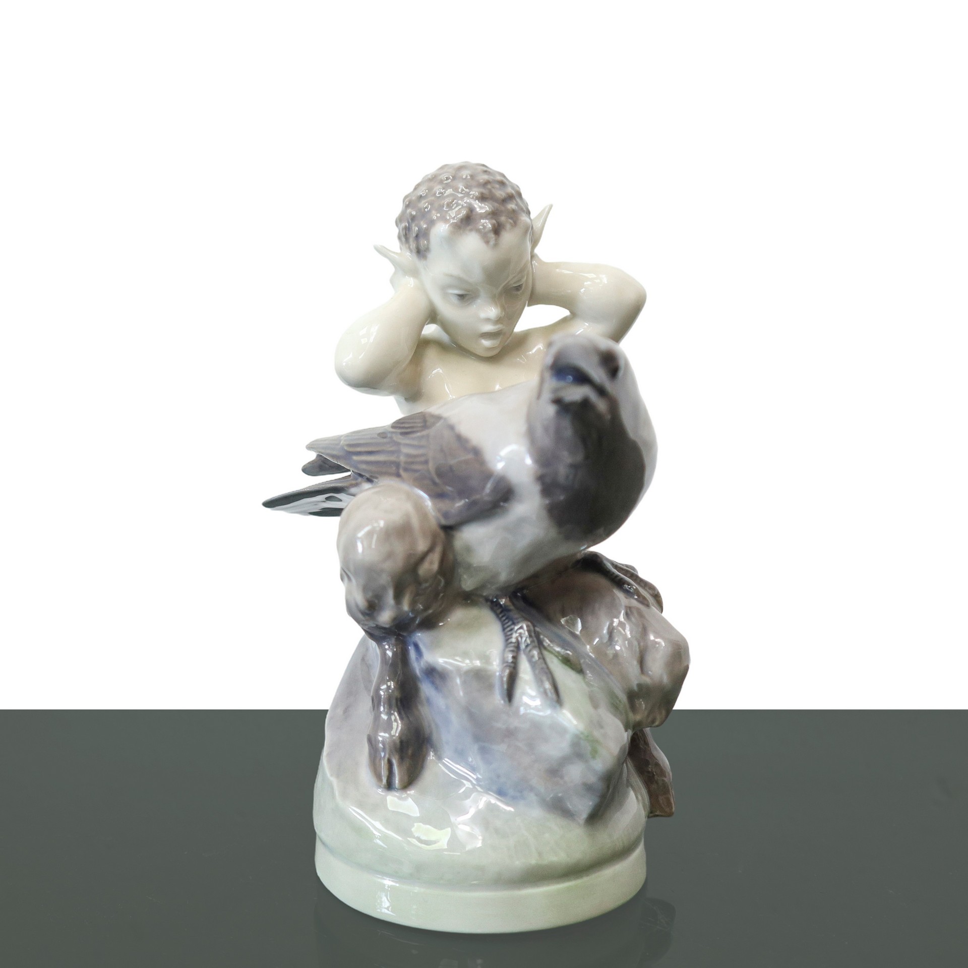Royal Copenhagen Denmark - Satiro con corvo H cm 17x13 2113. Marchio alla base. Firma sul retro.2113. Marchio alla base. Firma sul retro.