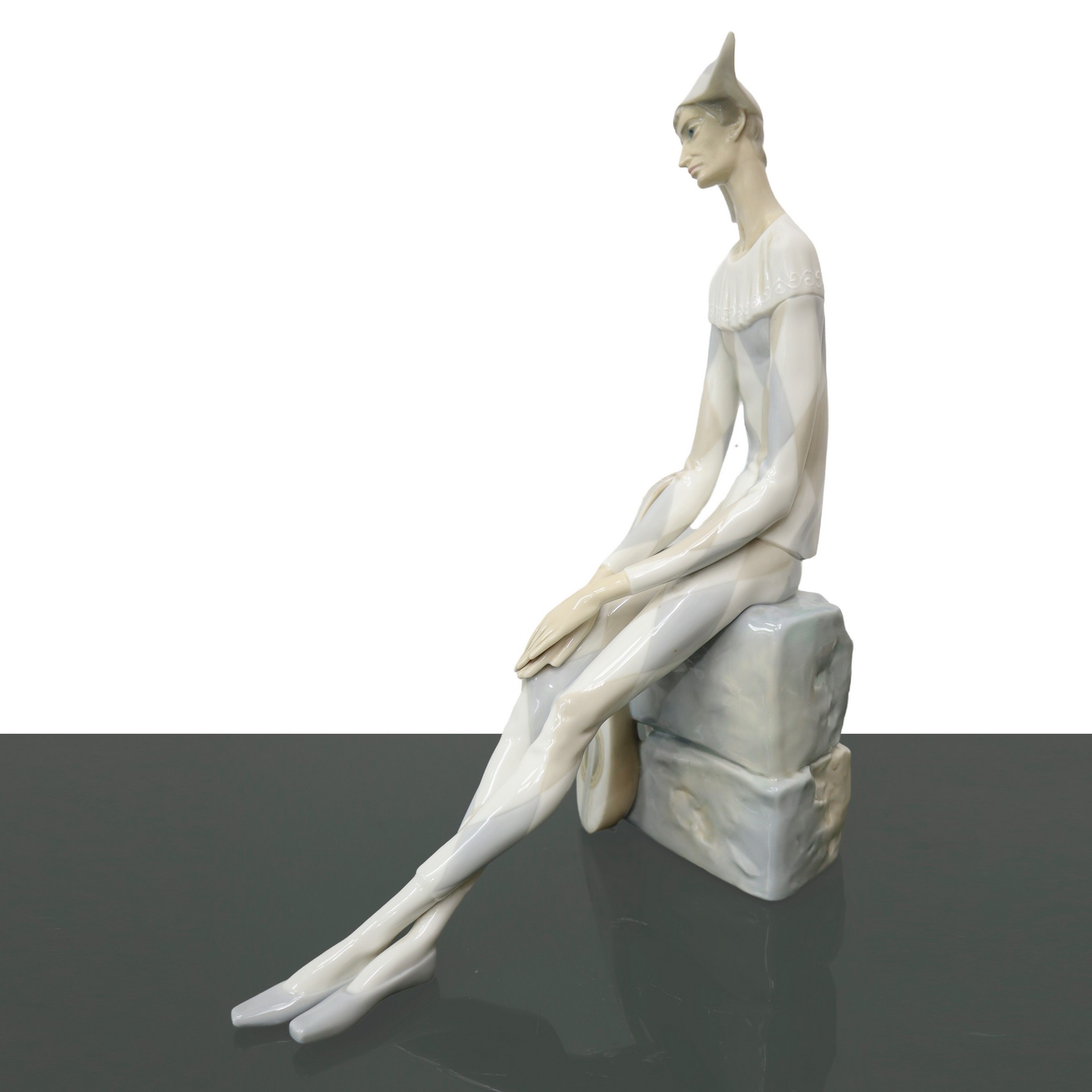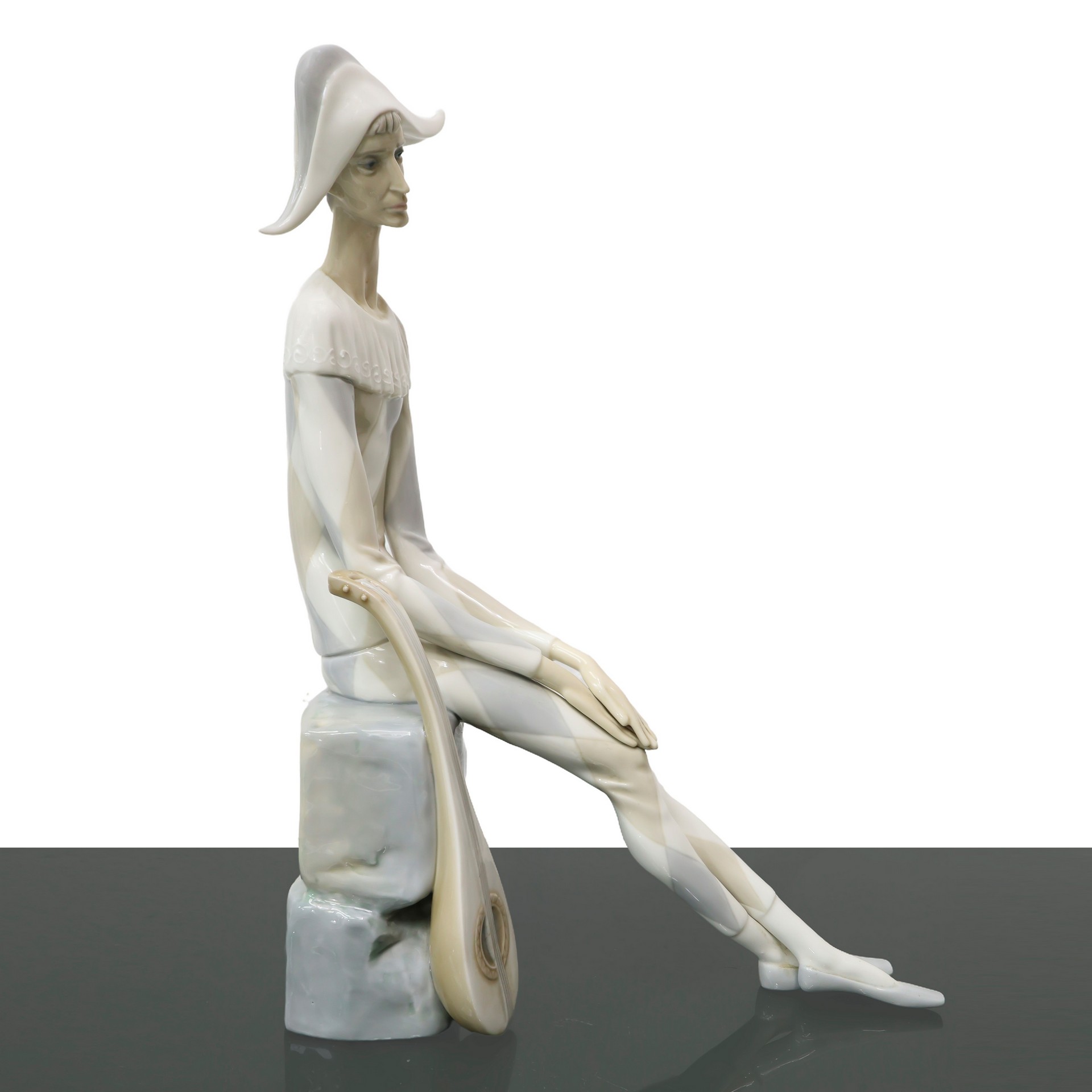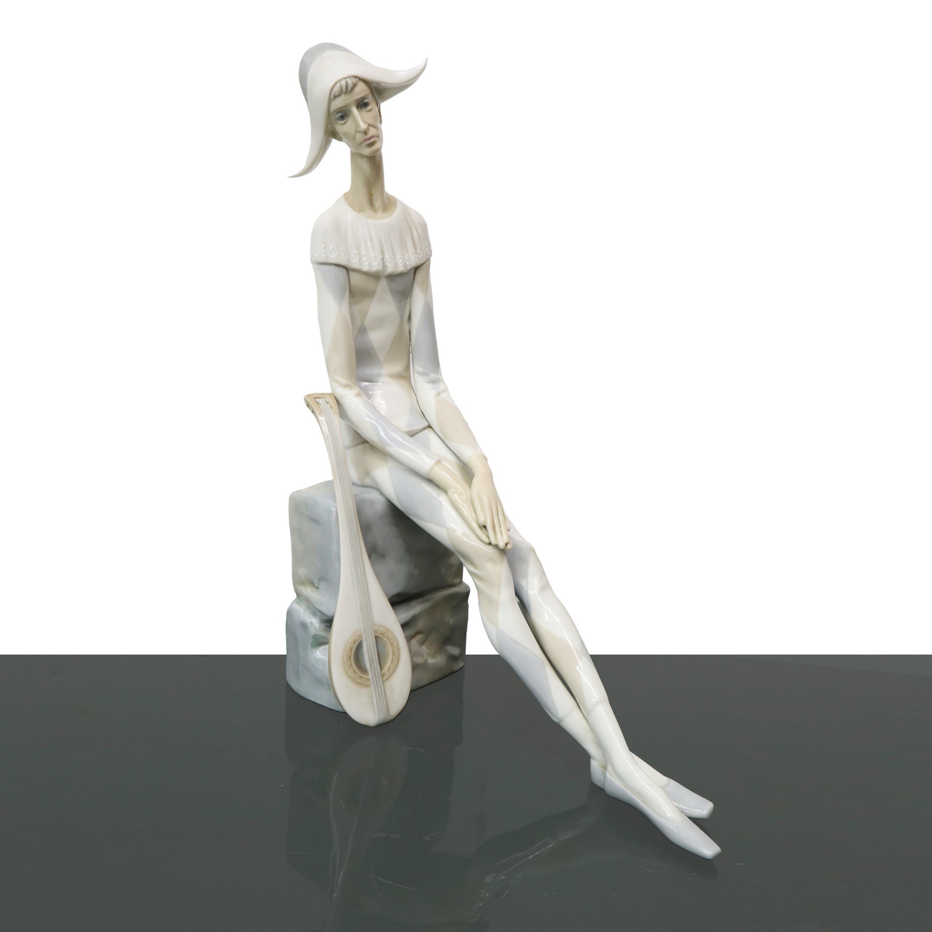 Lladrò (1956) - Statuina in porcellana Lladro fine 4558 di Arlecchino seduto con mandolino