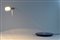 Blue crystal and metal base, sloping varnished metal stem, white satin blown glass diffuser with hole in the top to allow the light also to diffuse upwards; G4 halogen lamp.