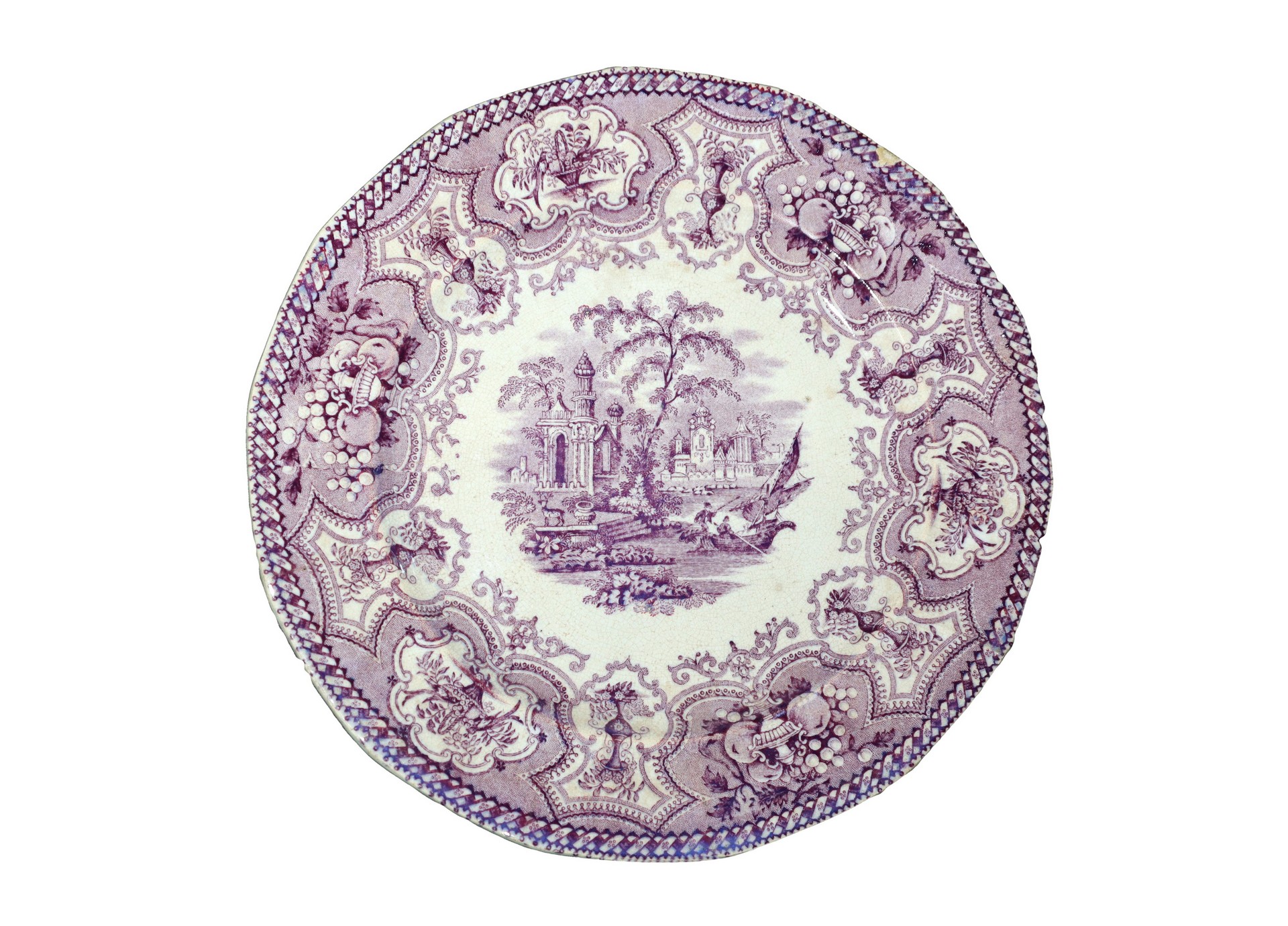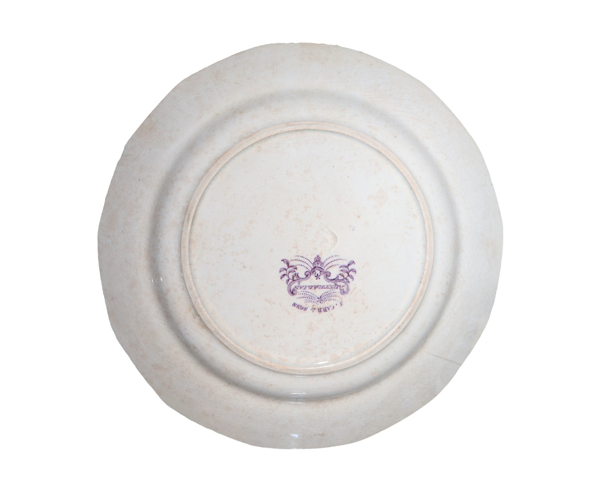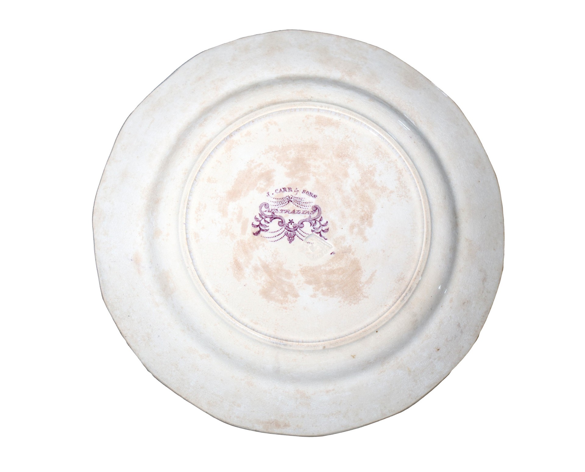 Gruppo composto da N.5 piatti da muro, Primi del 20° secolo Diametro cm 24 Con decorazione centrale di paesaggi e motici floreali a giro. Marchio J.Carr & Sons, Australian. Piccoli difettiCon decorazione centrale di paesaggi e motici floreali a giro. Marchio J.Carr & Sons, Australian. Piccoli difetti