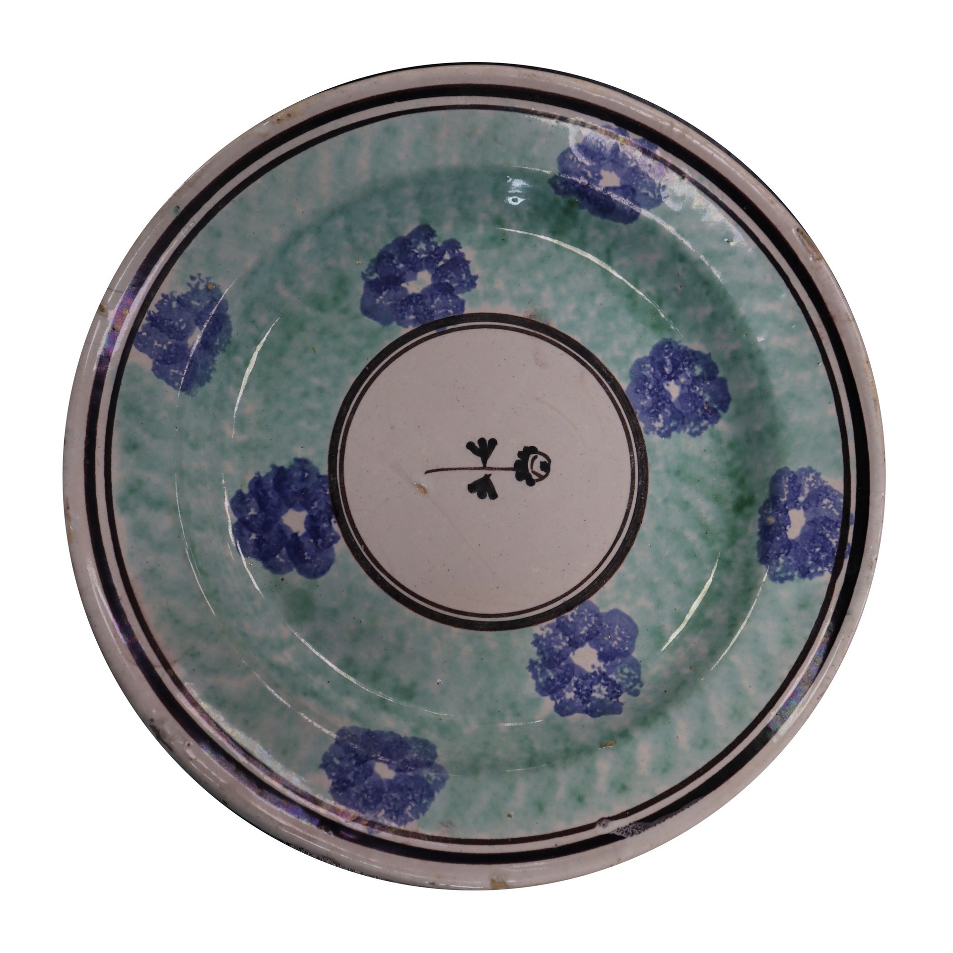Piatto in maiolica di Caltagirone spugnato con fiori blu