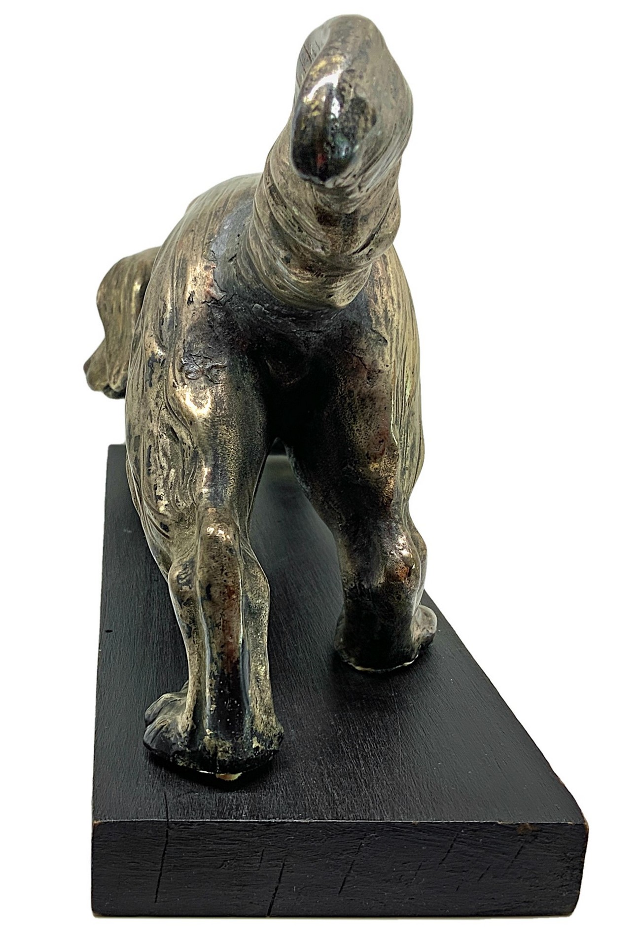 Cane, 20° secolo H 12x39 Scultura in lamina d’argento Firma indecifrabile
