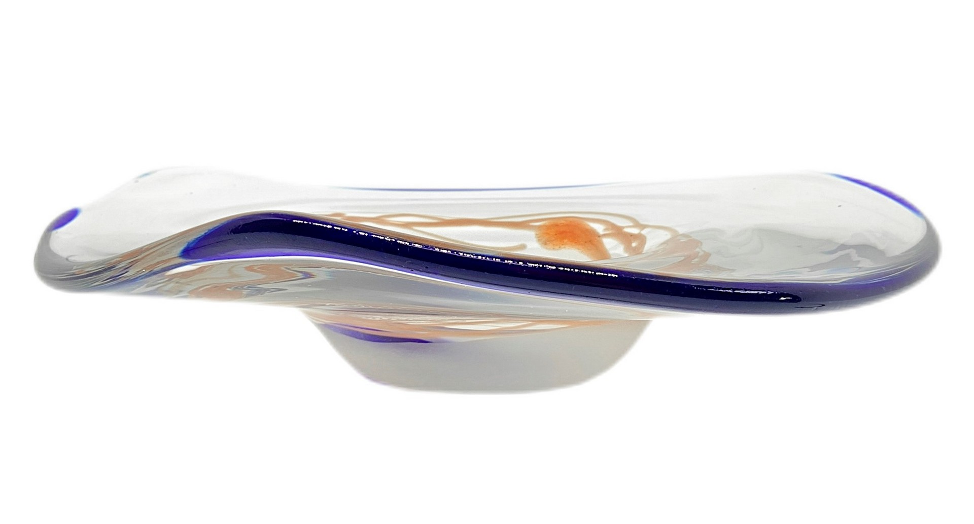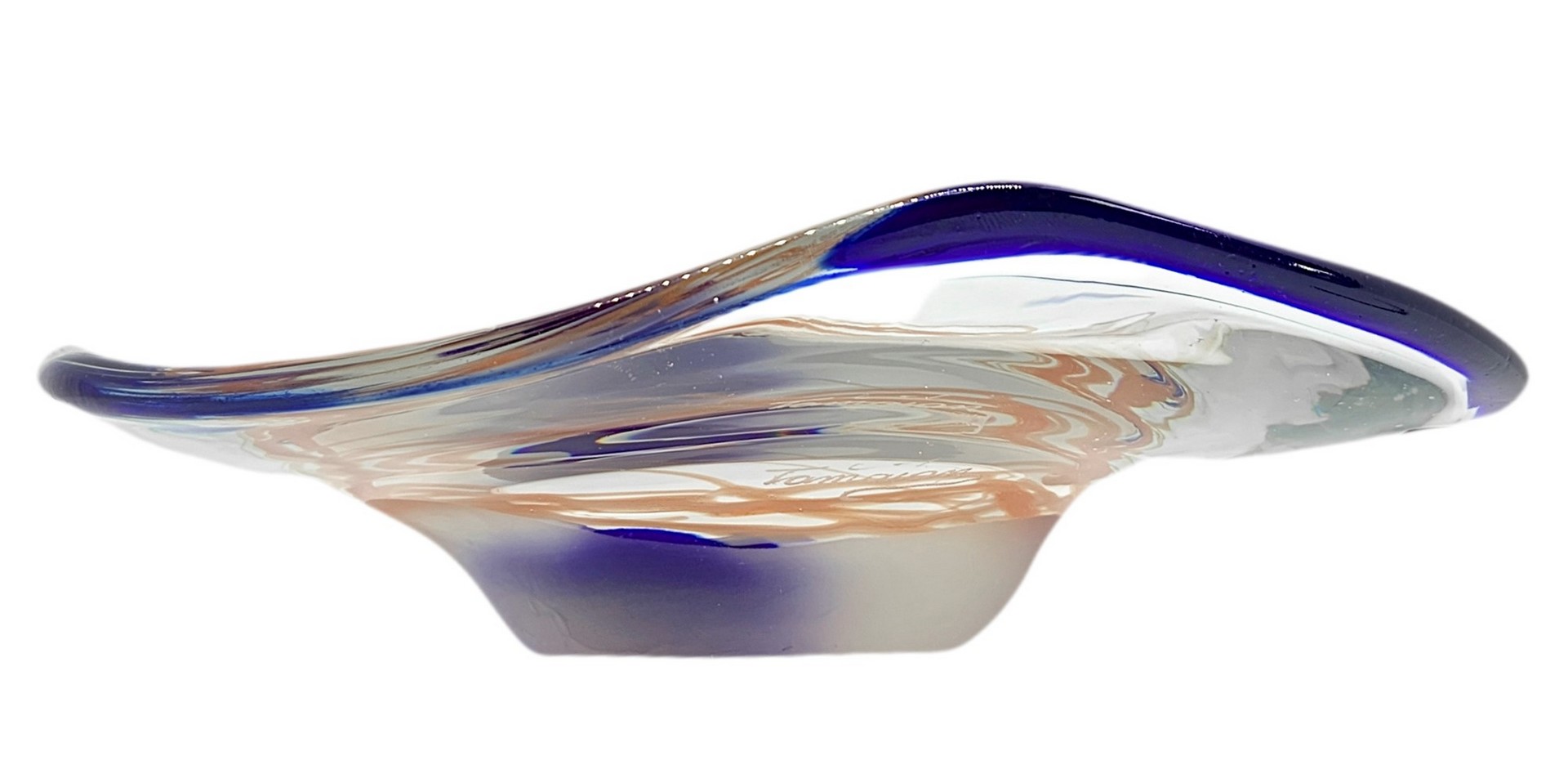 Piccolo centrotavola in vetro con striature nei toni del blu e marrone, 20° secolo
