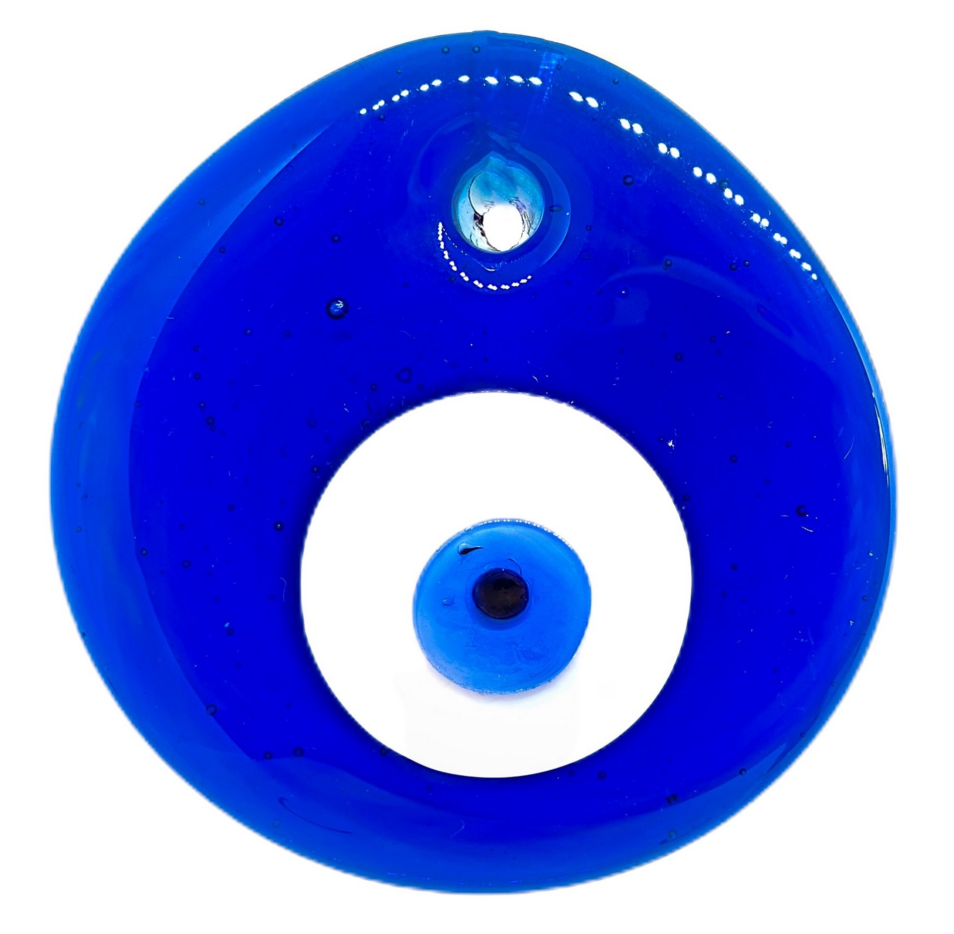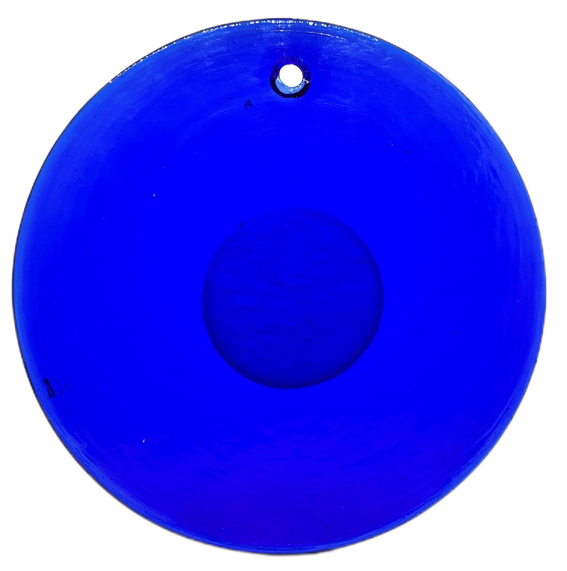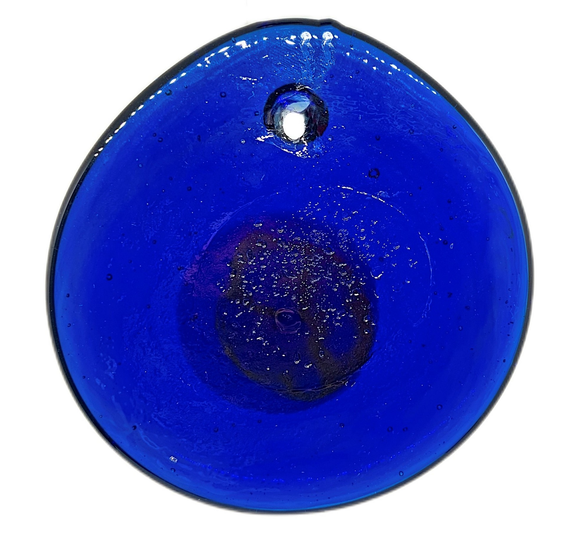 Coppia di piatti da muro in vetro Murano blu con Murrina. Diametro cm 9, Diametro 22,5