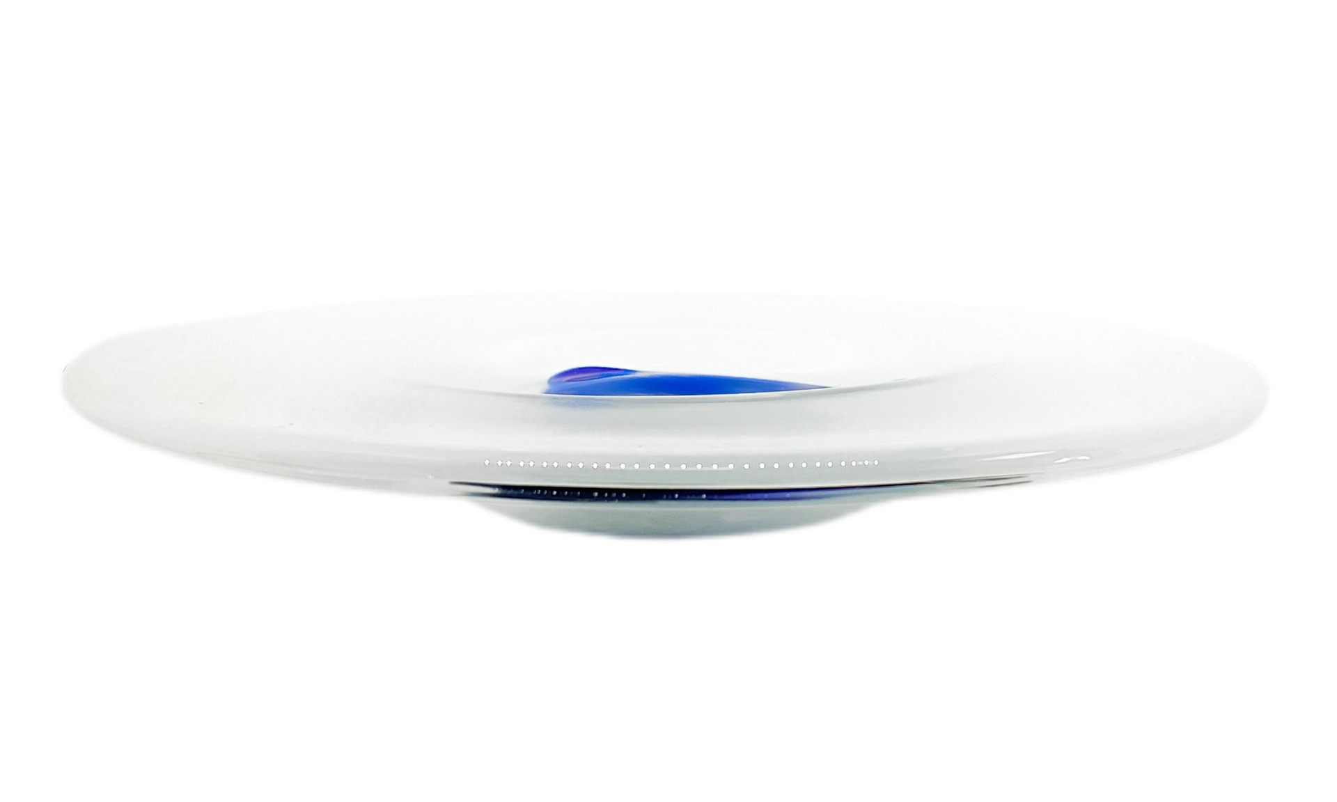 Lotto 146 | Piccolo centrotavola in vetro satinato con decoro al centro nei toni del blu, Ioan Tamaian, 20° secolo